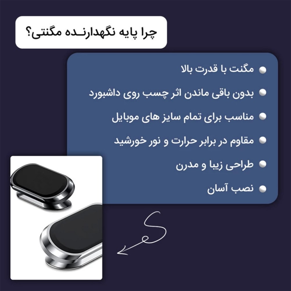 هولدر نگهدارنده گوشی مغناطیسی با مگنت بسیار قوی ، مناسب برای تمام سایز های گوشی، قابلیت چرخش 360درجه، طراحی زیبا و مدرن با قابلیت نصب آسان