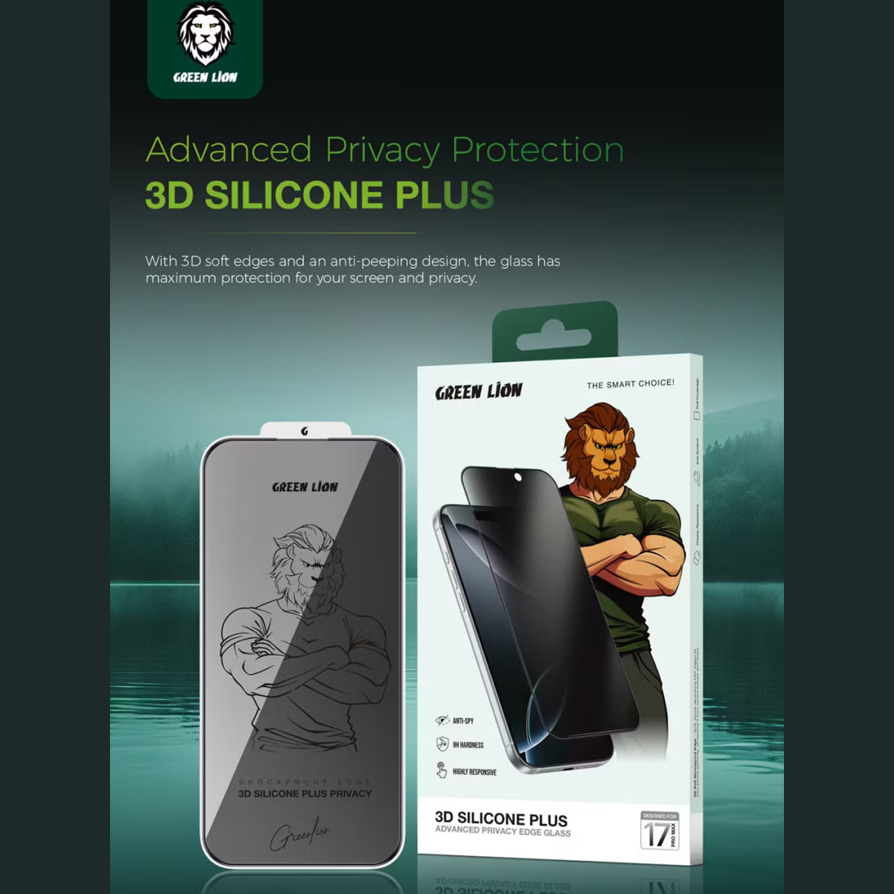 Green Lion GN3DSIL17PMBK 3D Silicone Plus Privacy Edge Glass for iPhone 17 Pro Max