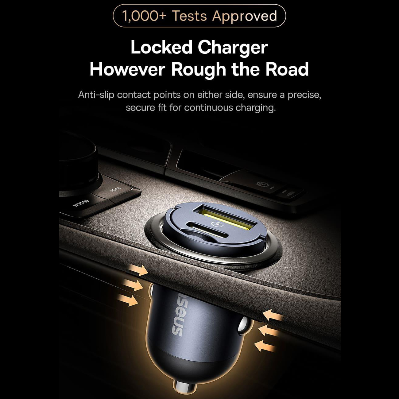 شارژر فندکی فست شارژ تایپسی ماشین 30 وات 3 آمپر بیسوس Baseus Tiny Star C00035001121-02