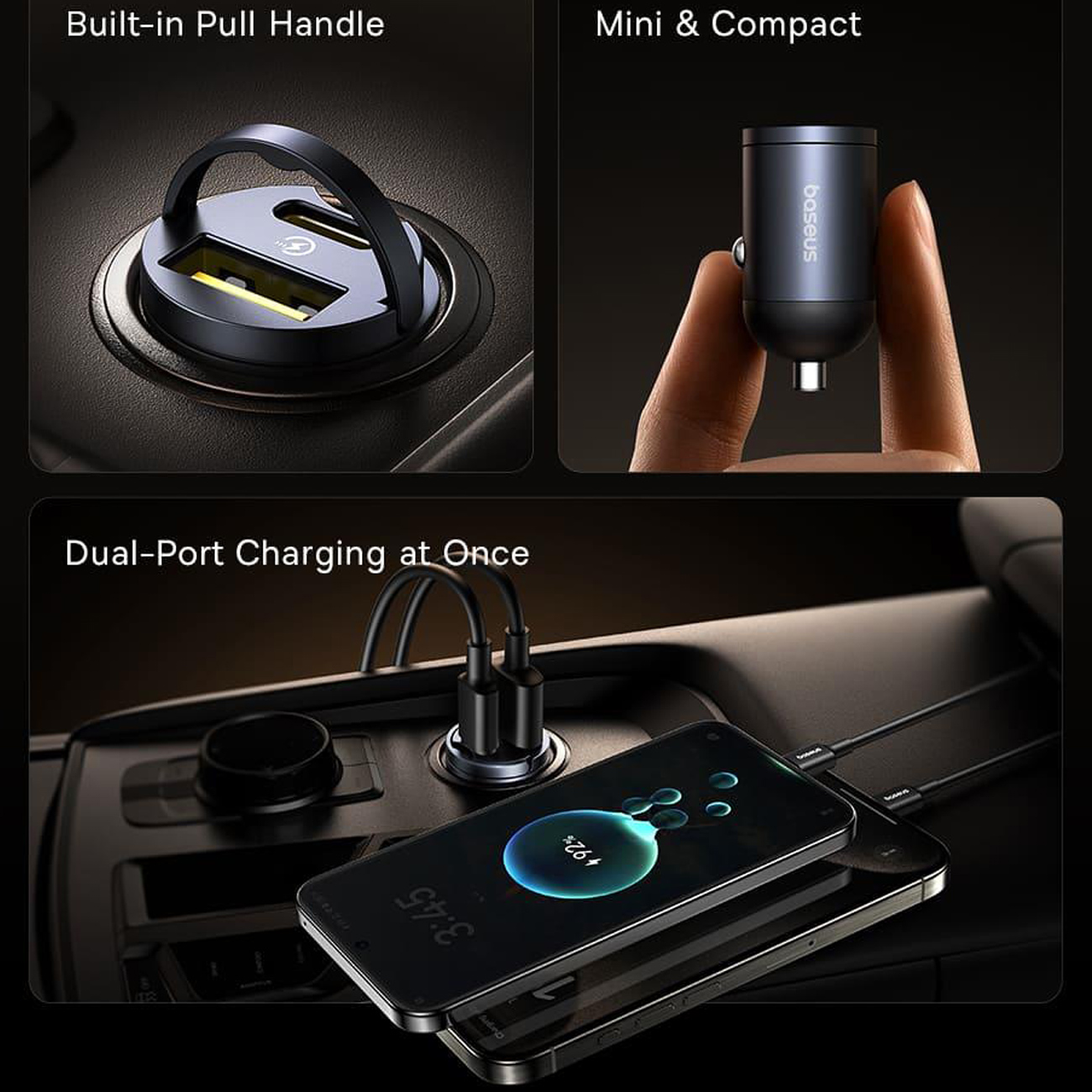 Baseus Tiny Star Car Charger, 30W, 3A, 1 x USB-A - 1 x USB-C, C00035001121-02