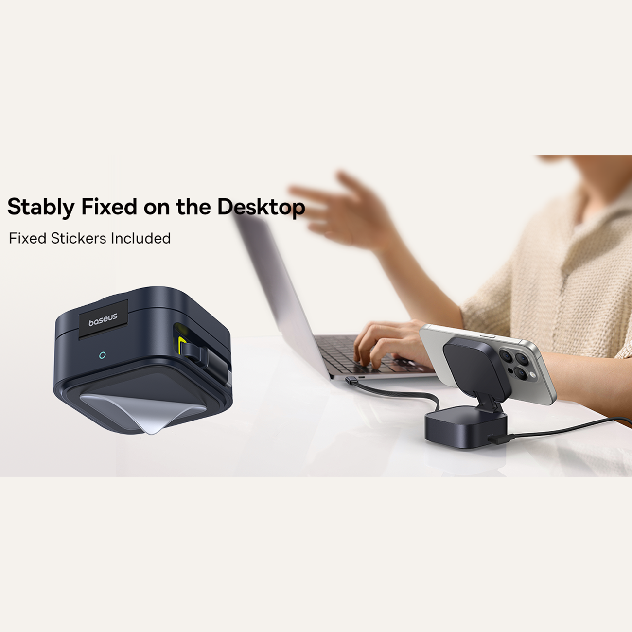 شارژر وایرلس 15 وات و هولدر موبایل مگنتی رومیزی بیسوس Baseus PicoGo BSW-540 با کابل تایپ سی جمع شونده 67 وات