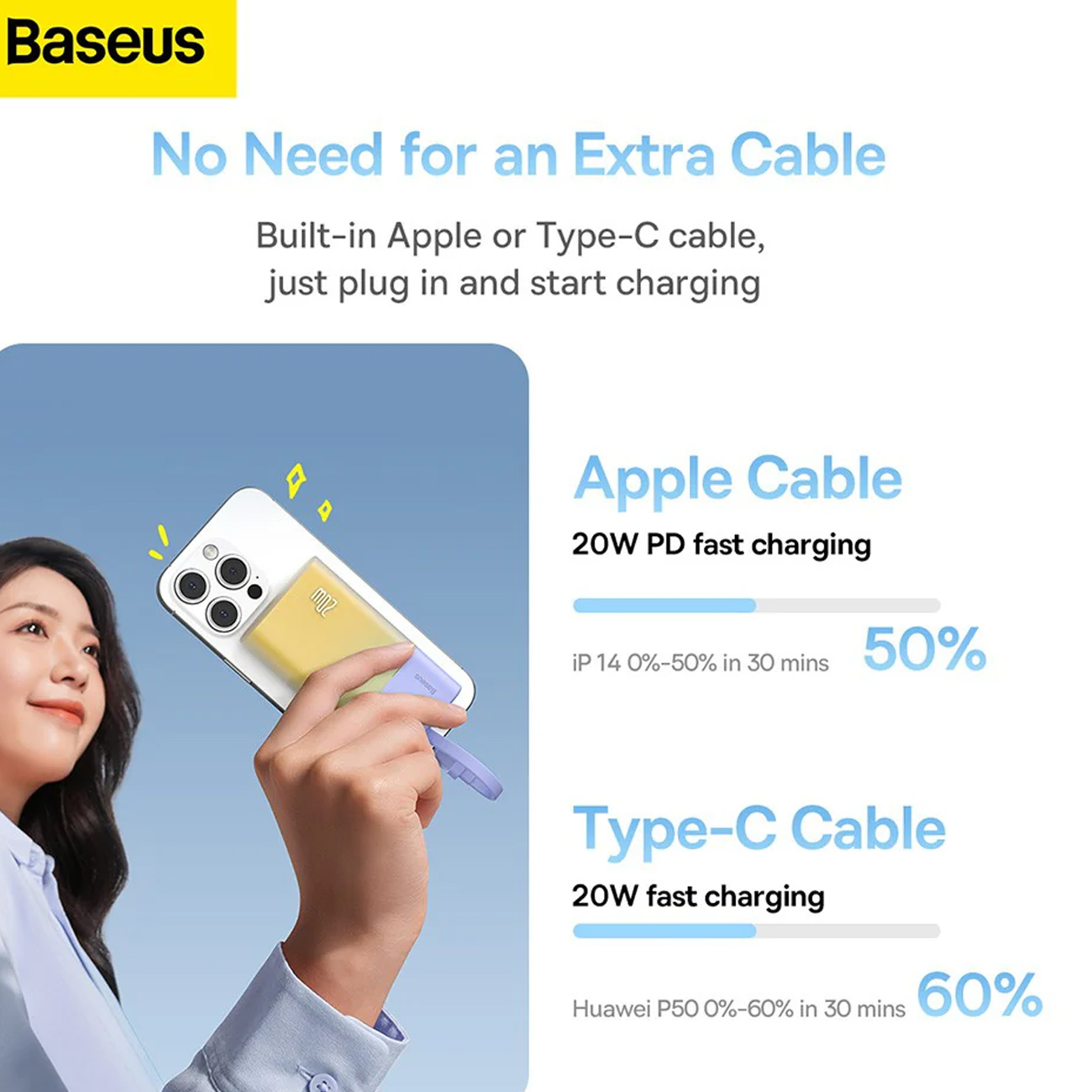 | کابل های داخلی | کابل داخلی (Lightning یا USB‑C) + پورت USB‑C دوطرفه (ورودی/خروجی) |