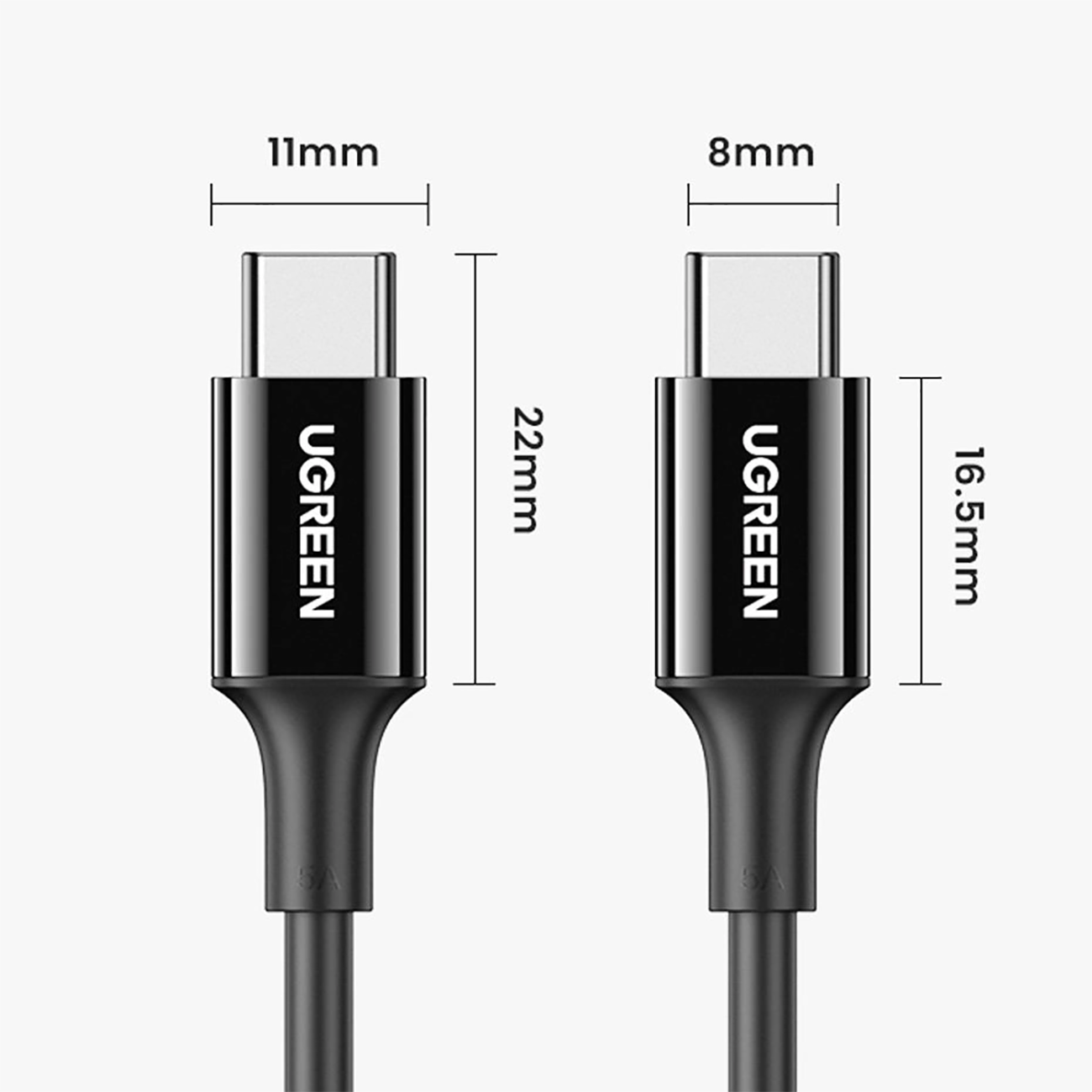 کابل تایپسی به تایپسی 100 وات 1 متری یوگرین ugreen US300 شارژ سریع و انتقال دیتا