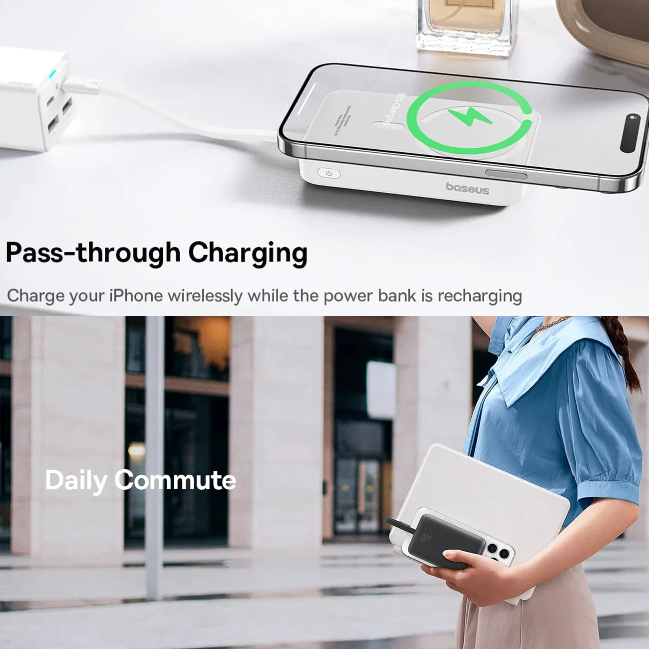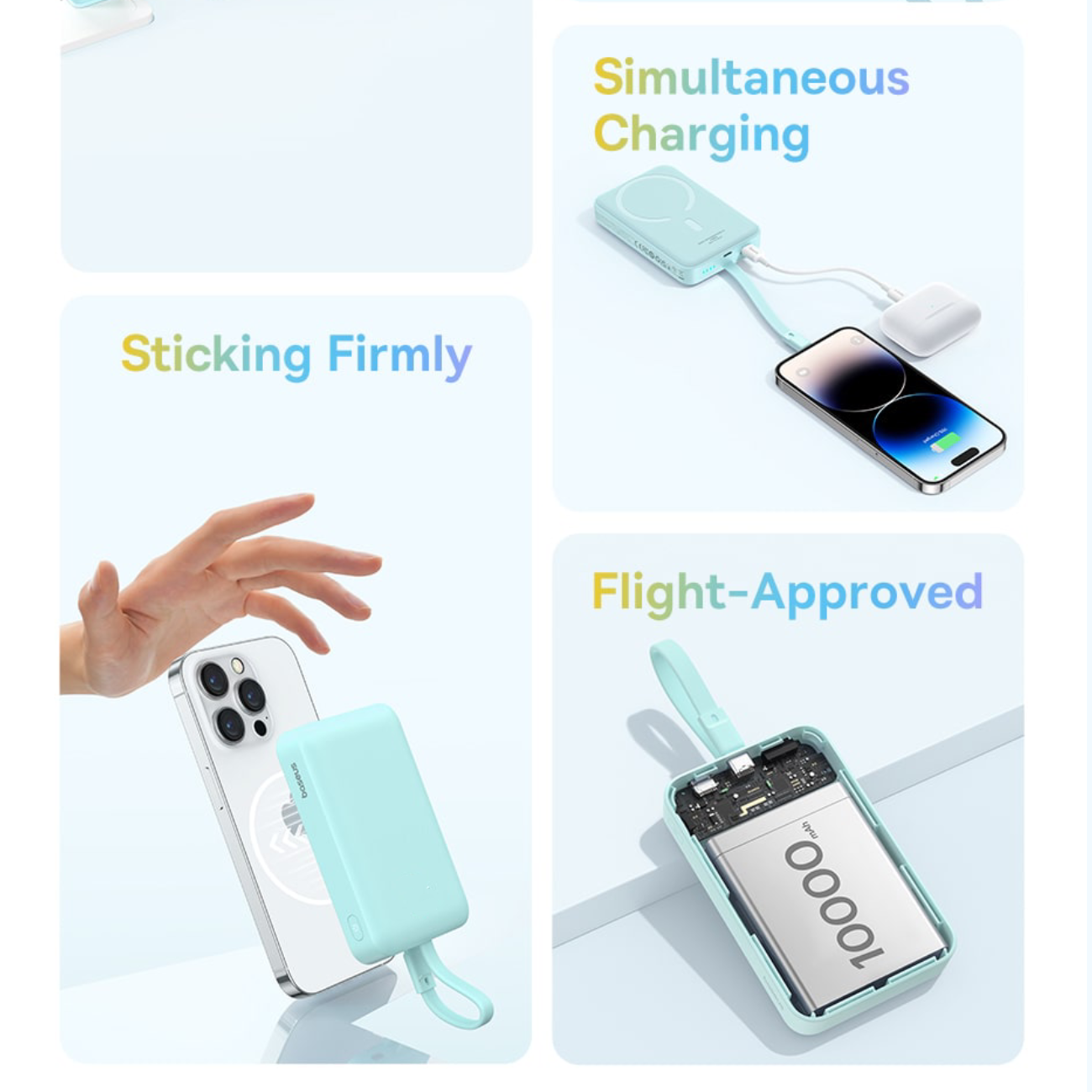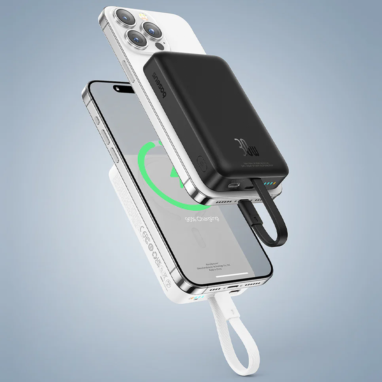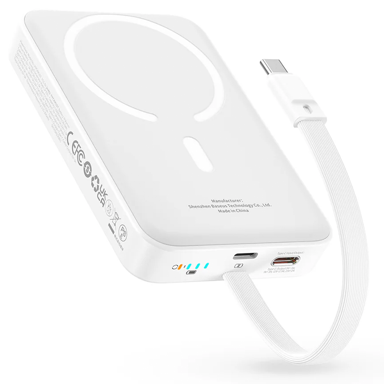 Baseus 10000mAh Magnetic Mini Wireless Fast Charge Power Bank 30W With Built-In Type-C Cable PPCXM10T P1002210B113-00