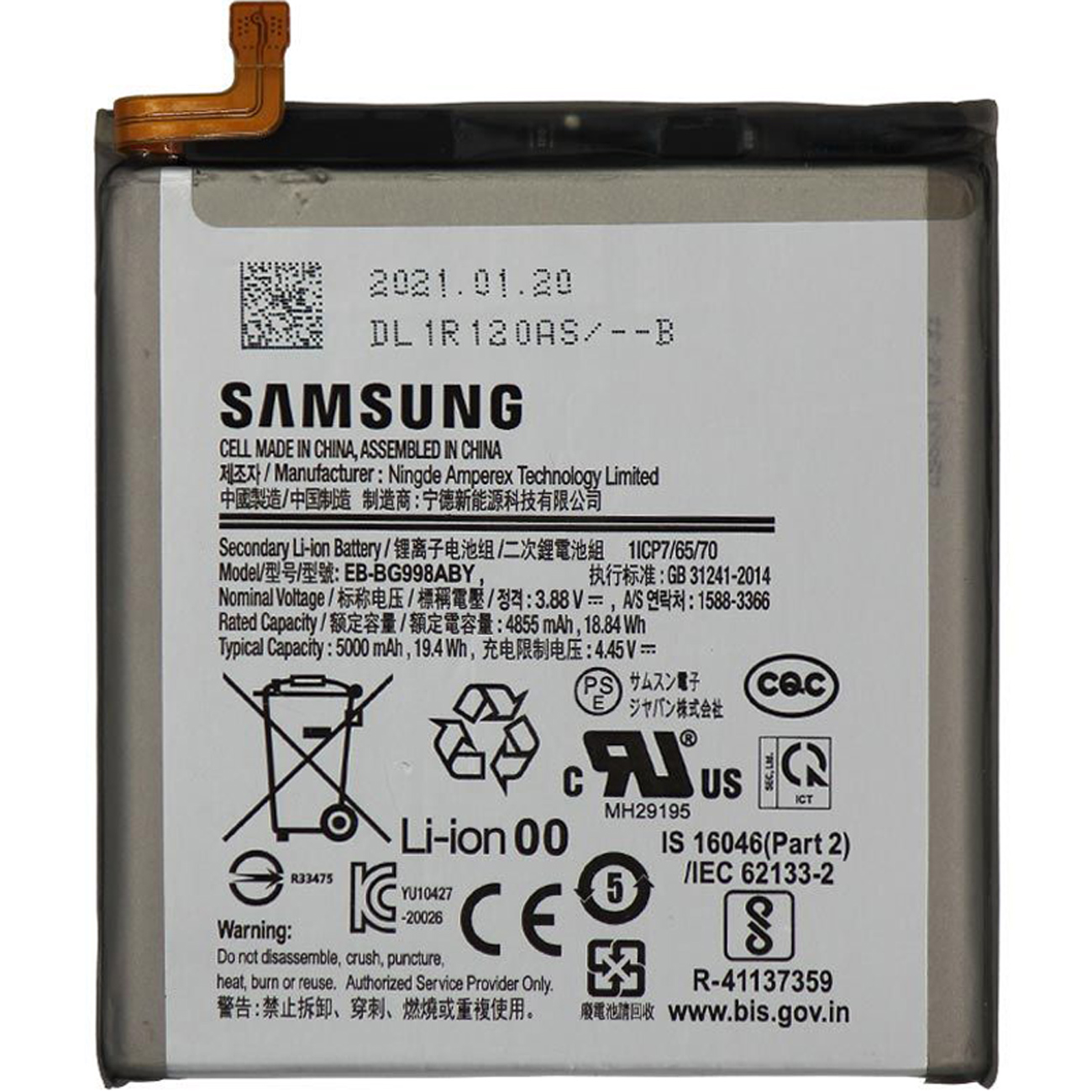 | نام محصول | باتری EB-BG998ABY (باتری لیتیومیونی ثانویه / پک باتری لیتیومیونی) |
