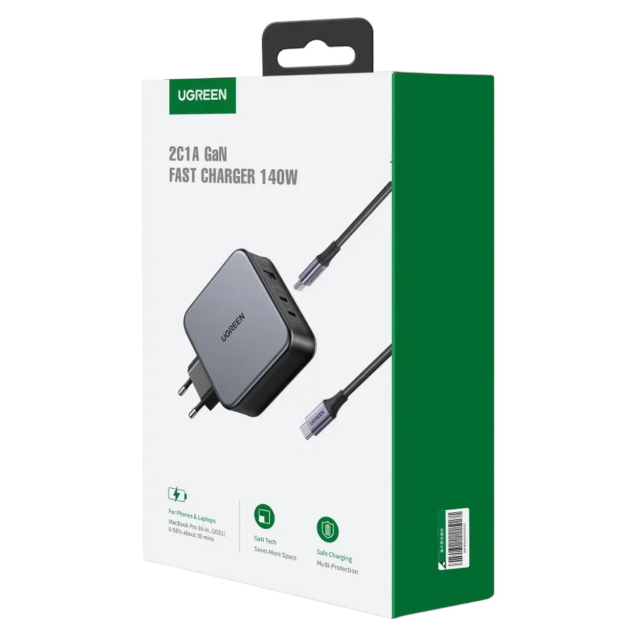 شارژر دیواری یواسبی و تایپسی فست شارژ 140 وات یوگرین Ugreen CD289 90549 با کابل دوسر تایپسی
