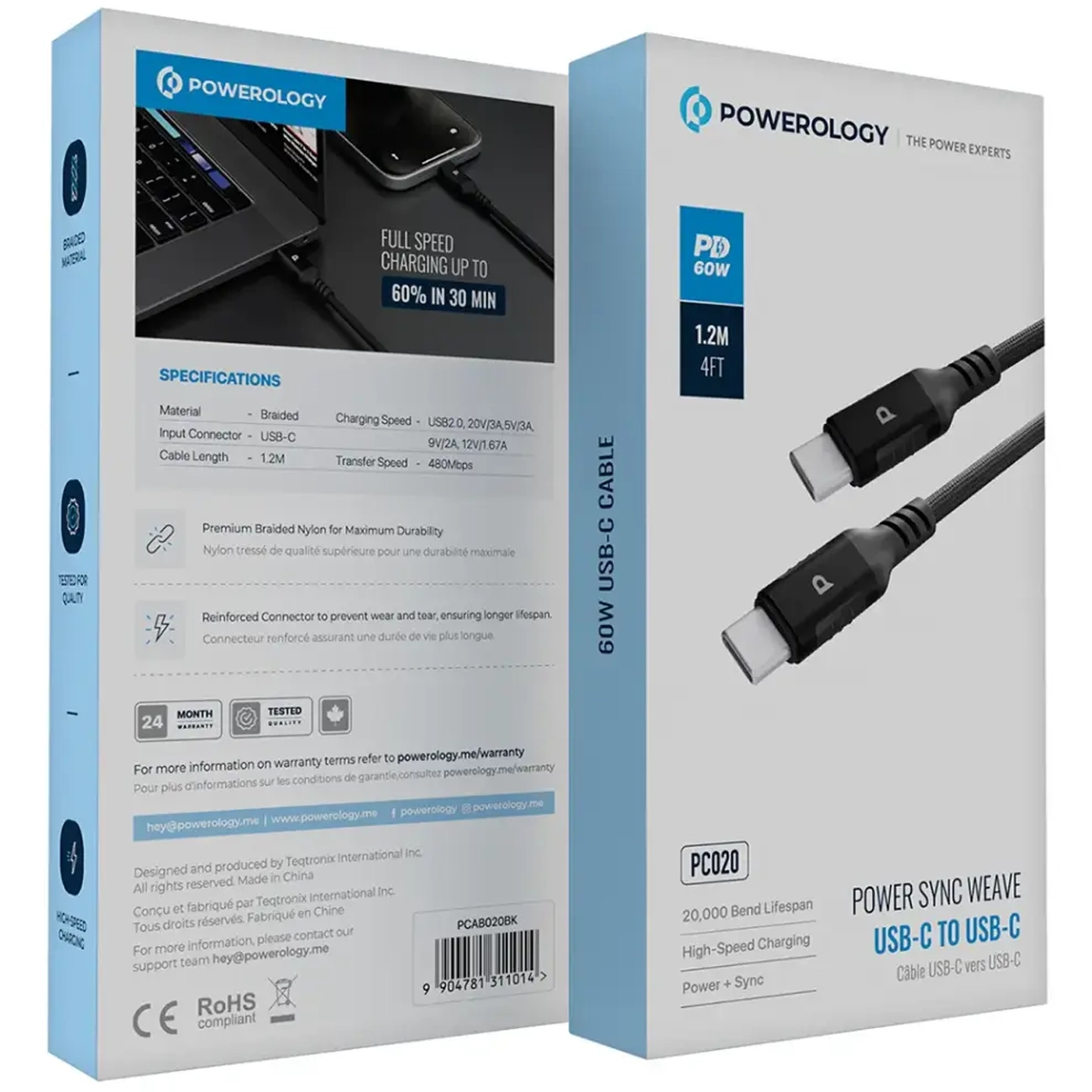 Powerology PC020 PCAB020BK-PCAB020LGY Type-c to Type-c fast charging 1.2m cable