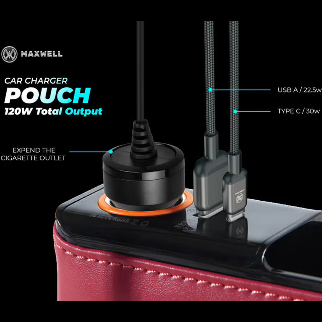 کنسول وسط خودرو مکسول Maxwell Car Charge Pouch همراه شارژر فندکی USB و تایپسی