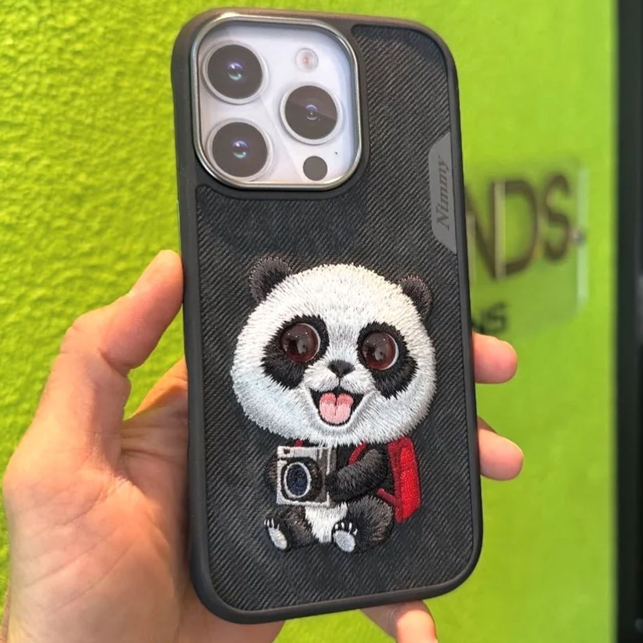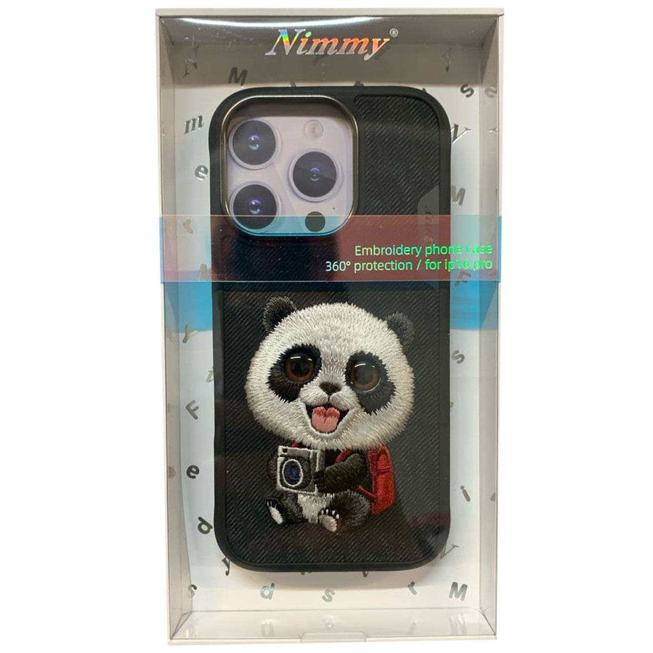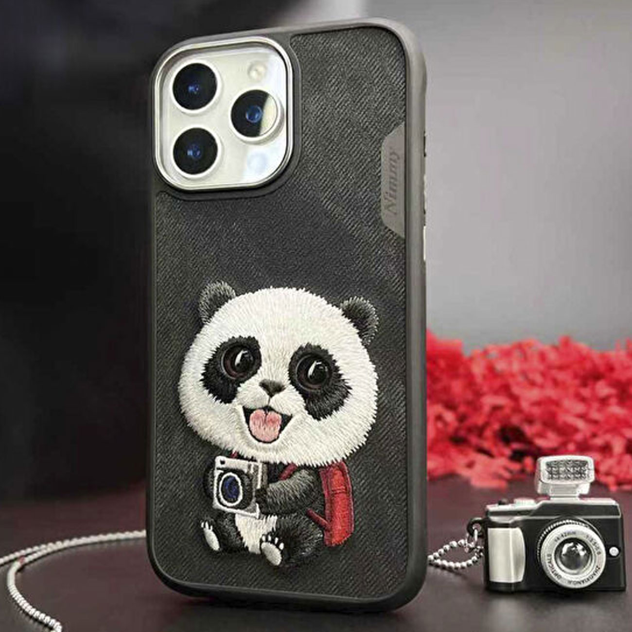 NIMMY N-XDY-IP16-PRO-06-A iPhone 16 Pro Compatible 3D Eye Panda Detailed Real Embroidery Embossed New Big Eyes Phone Case