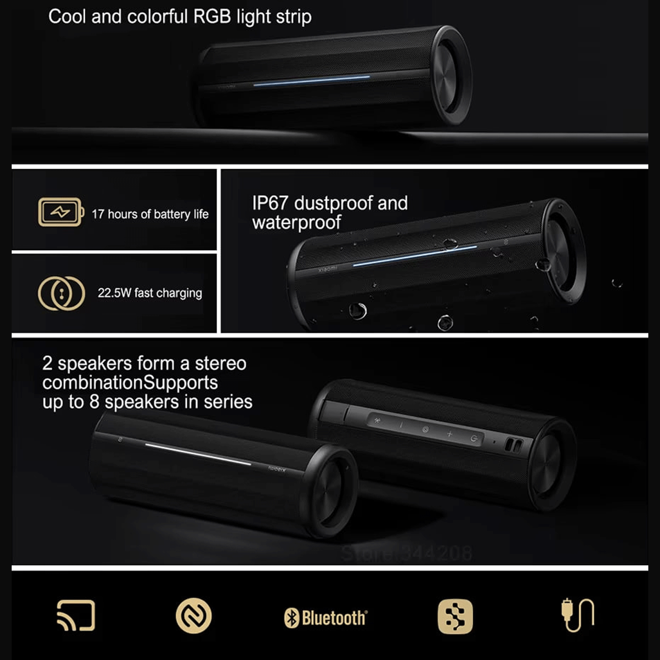 Xiaomi Bluetooth Speaker ASM02A, Bluetooth 5.3 Battery Life 40W