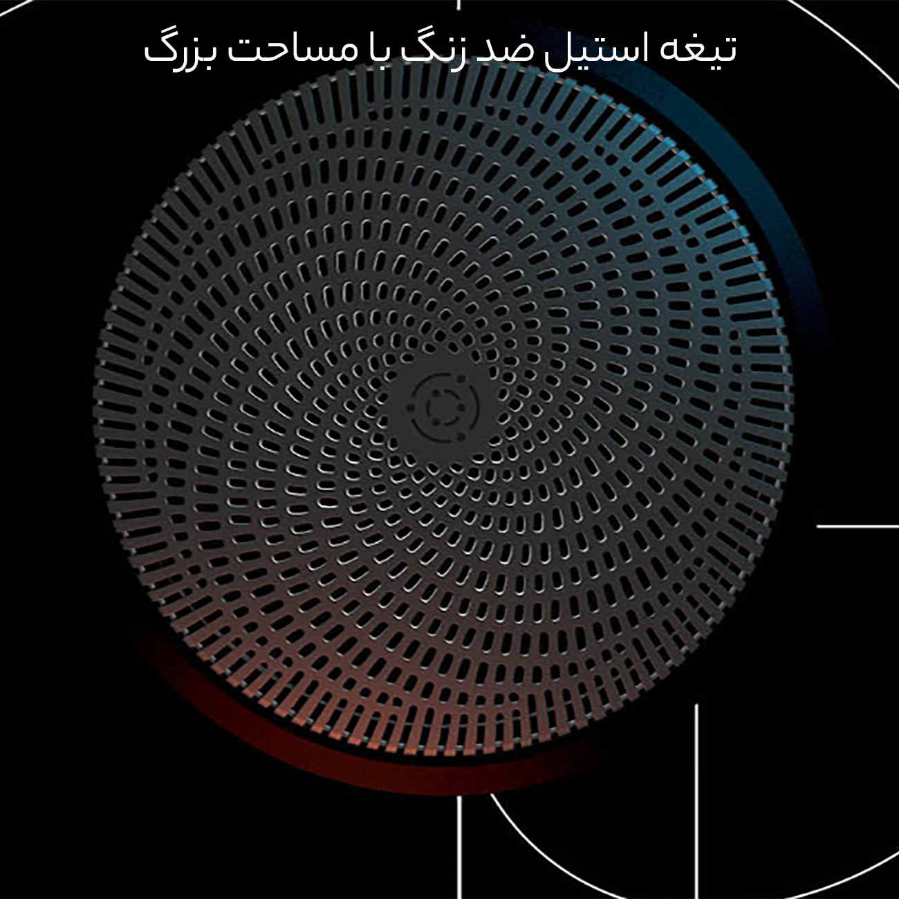 | مدت زمان شارژدهی | حدود 5 ماه تراشیدن/ 360 دقیقه روشنایی/ 360 دقیقه فن |