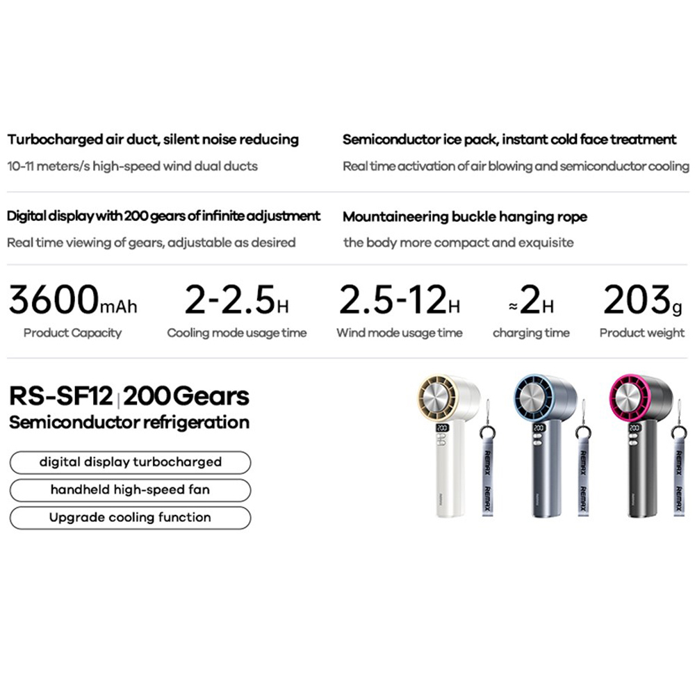 | ویژگی های ویژه | خنککننده نیمهرسانا، نمایشگر دیجیتال، تنظیم 200 سطح باد، دو حالت عملکرد، موتور محکم، قلاب کوهنوردی، بند دستی، طراحی ارگونومیک، استفاده پرقدرت و طولانیمدت |