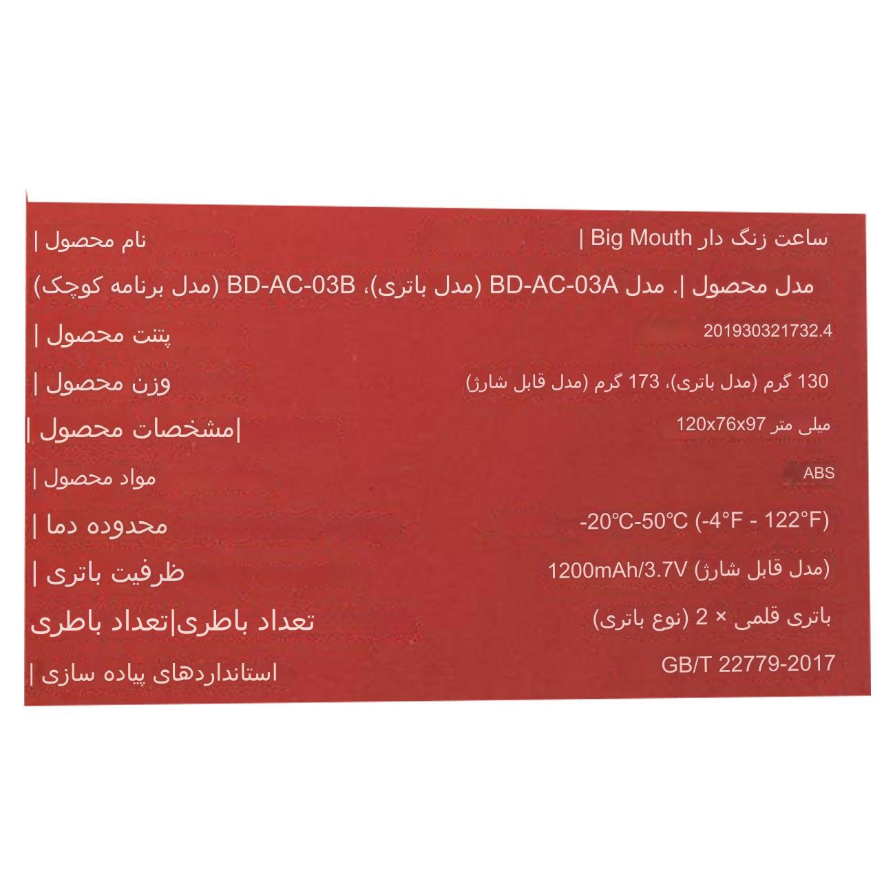 ساعت زنگدار فانتزی رومیزی شارژی BD-AC-03B