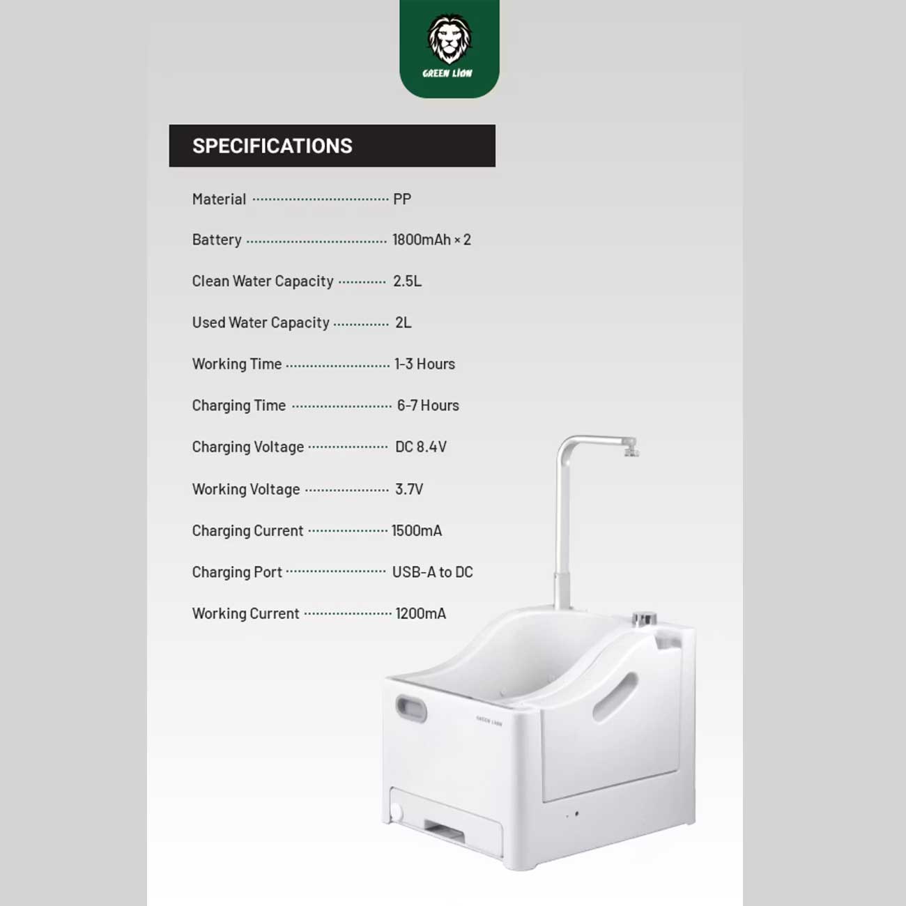 دستگاه شستشو قابل حمل شارژی گرینلاین Green Lion GWM-10 GNGW10PWUDWH