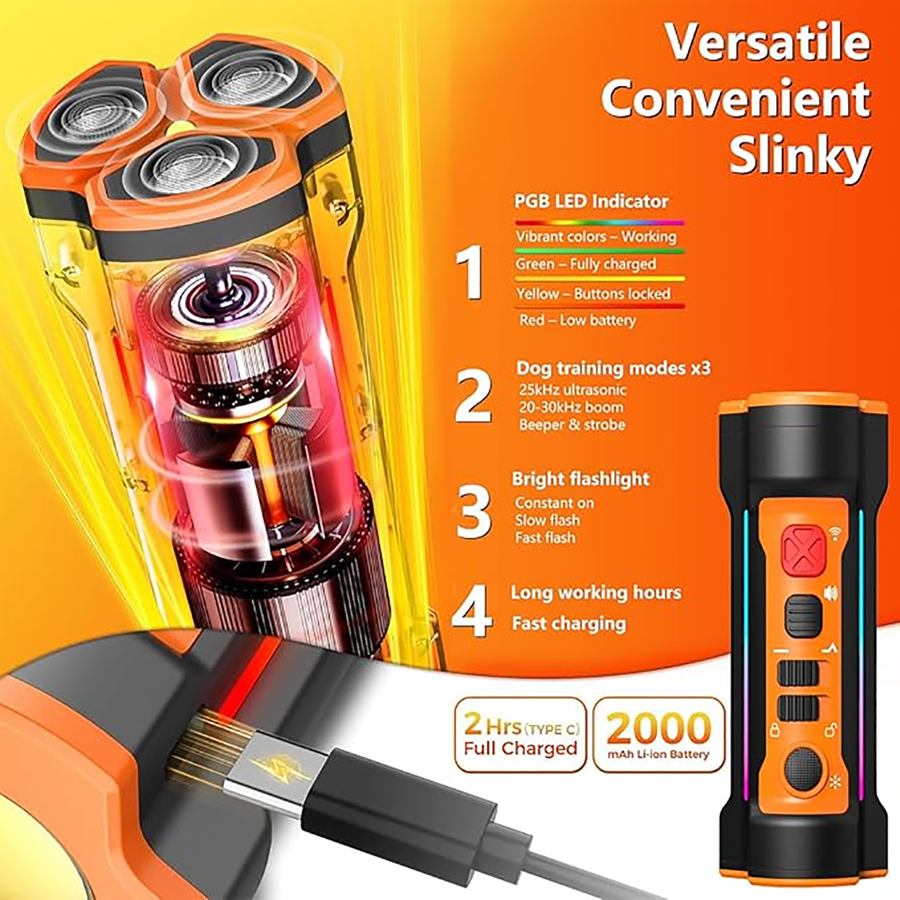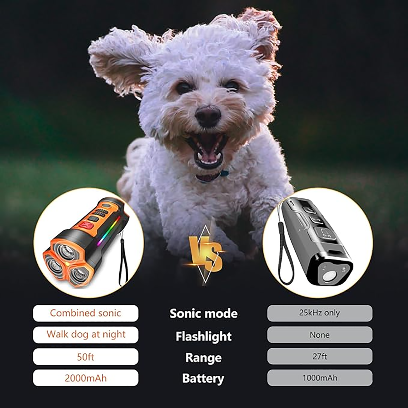 | سه قابلیت مفید | صدای اولتراسونیک برای متوقف کردن صدا و رفتارهای نادرست، حالت بوق هشدار برای آموزش، و چراغقوهی پرنور برای پیادهروی شبانه یا مواقع ضروری |