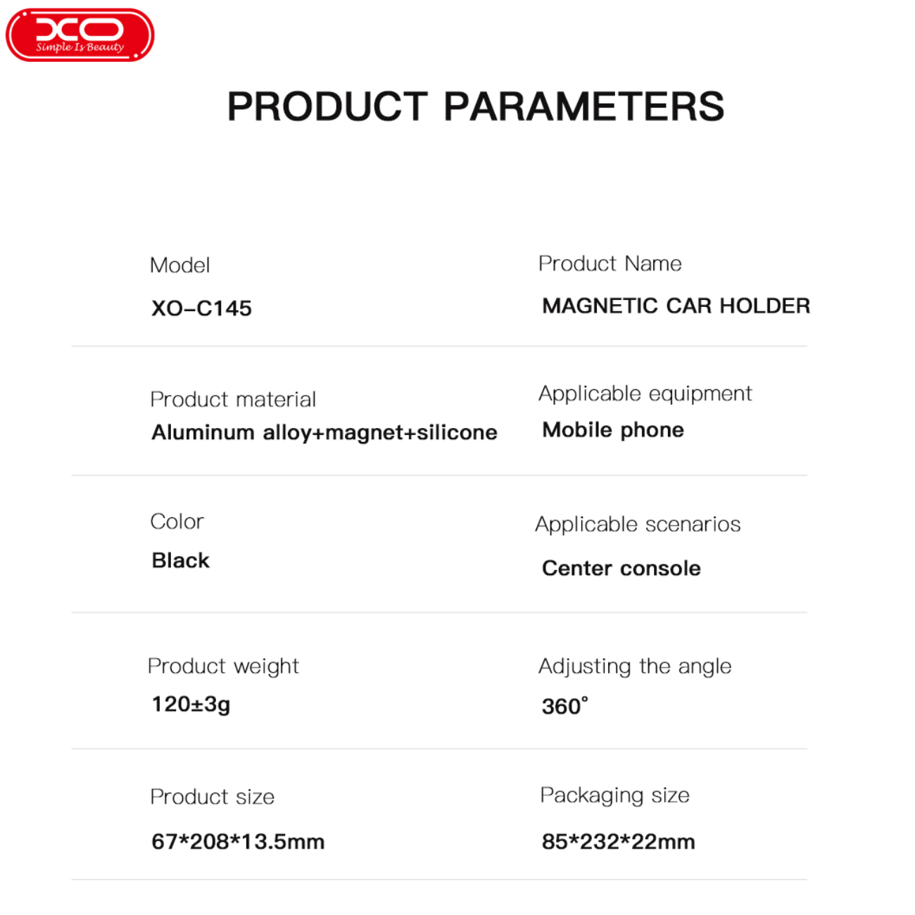 | جنس | آلیاژ آلومینیوم + مگنت + TPU+ چسب + سیلیکون |