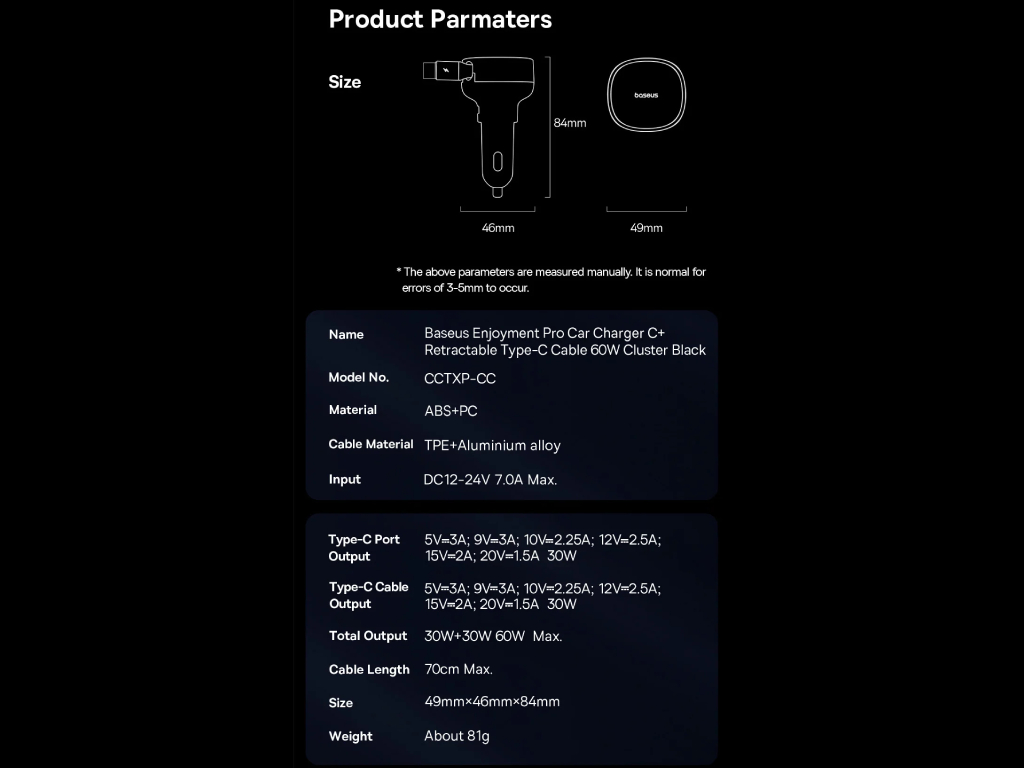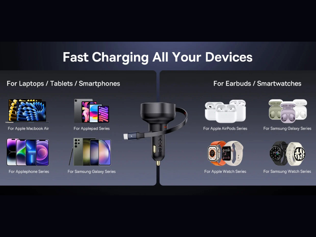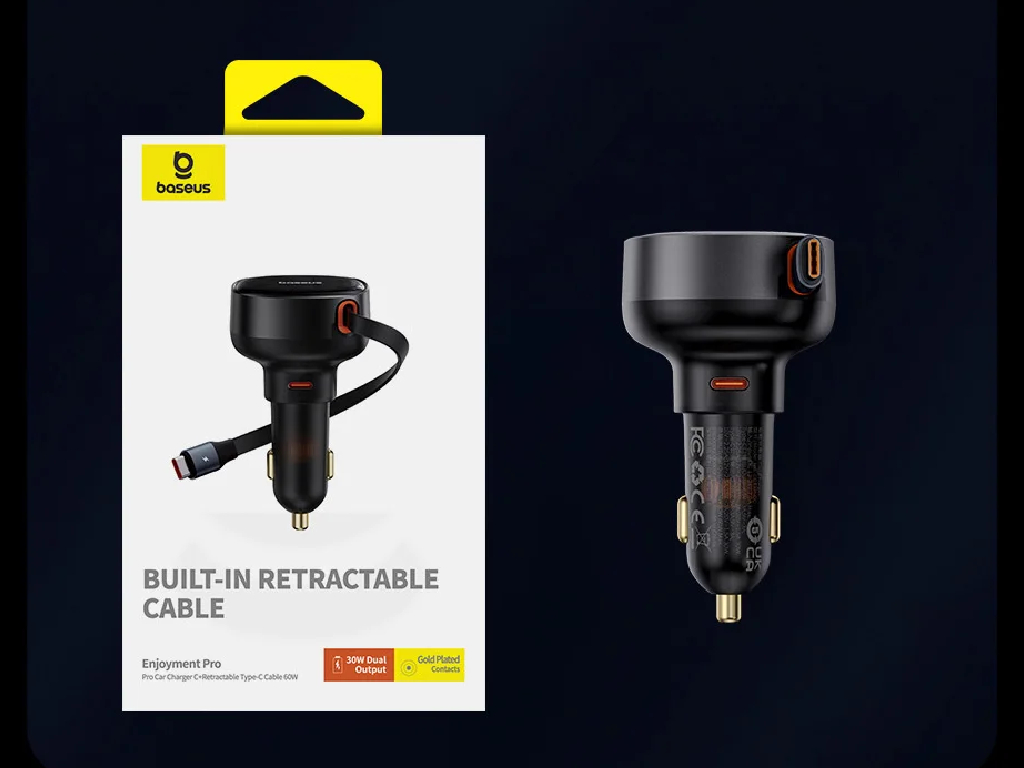 Baseus Enjoyment Pro Retractable USB-C Car Charger 60W C00057802111-01
