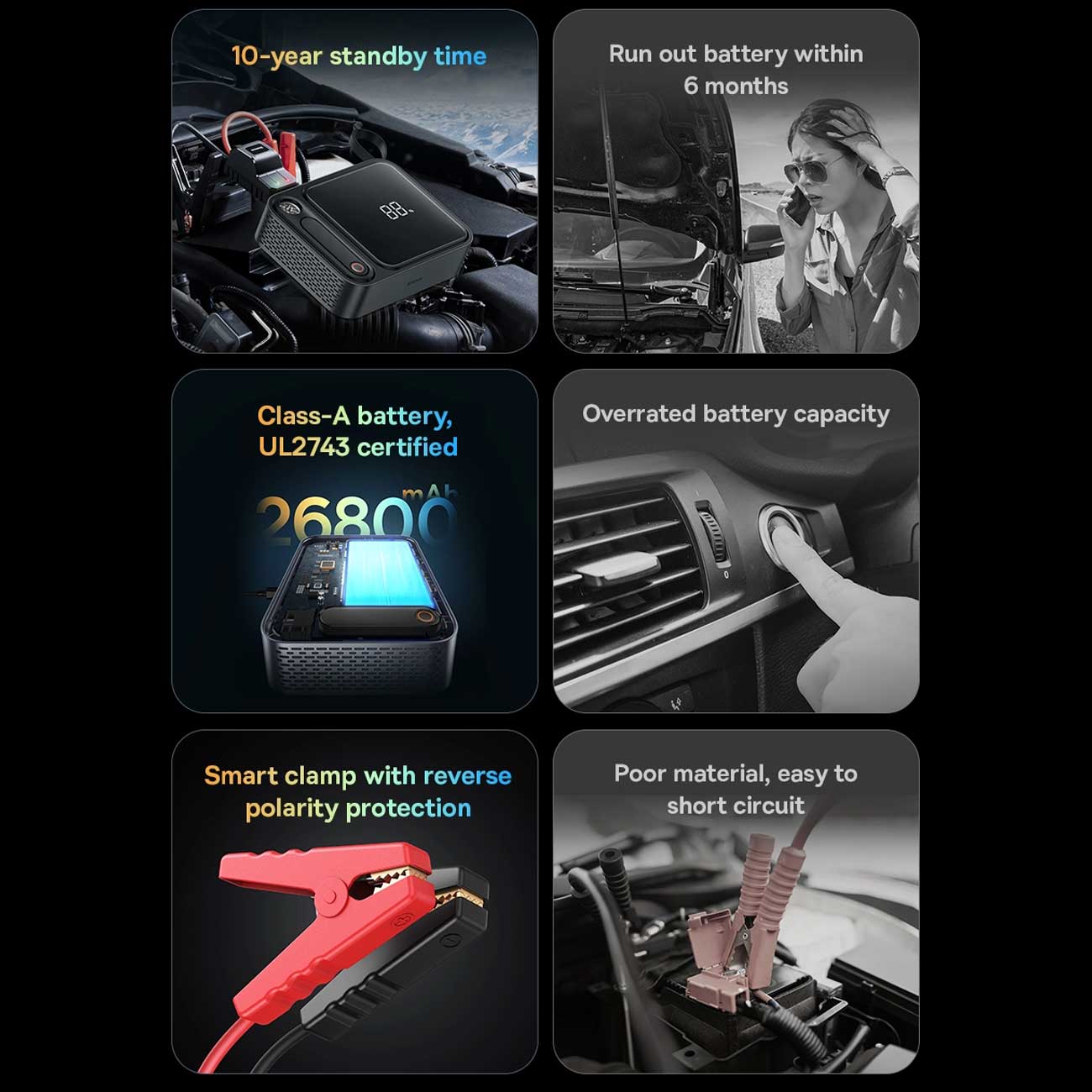 | امکانات و قابلیتها | پاوربانک، جامپ استارتر، چراغ قوه |