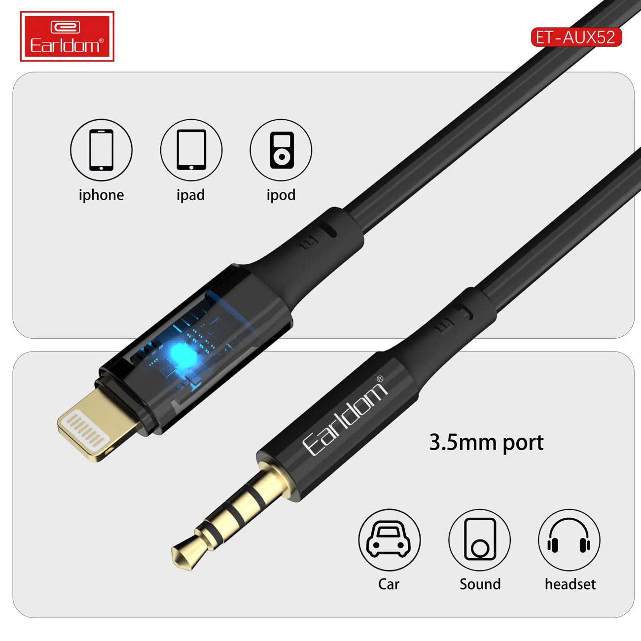 Audio cable Earldom ET-AUX52 3.5mm to Lightning, 1.0m