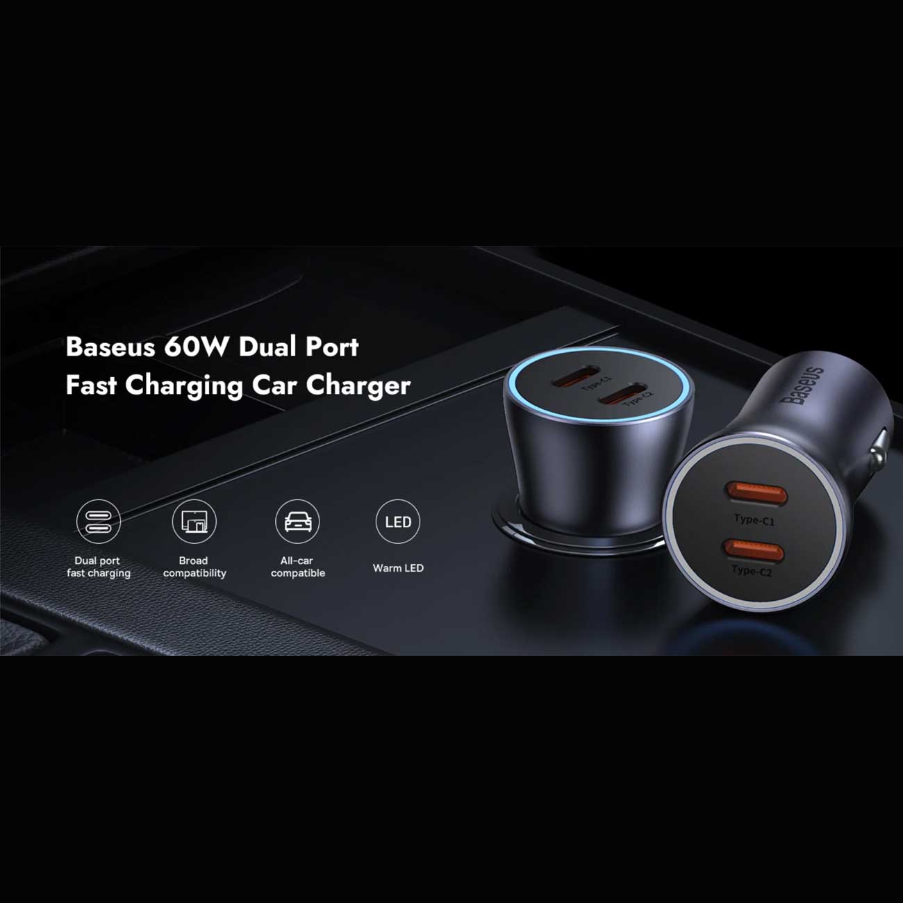 Baseus Golden Contactor Max Dual Fast Charge Car Charger C+C 60W CGJM000213