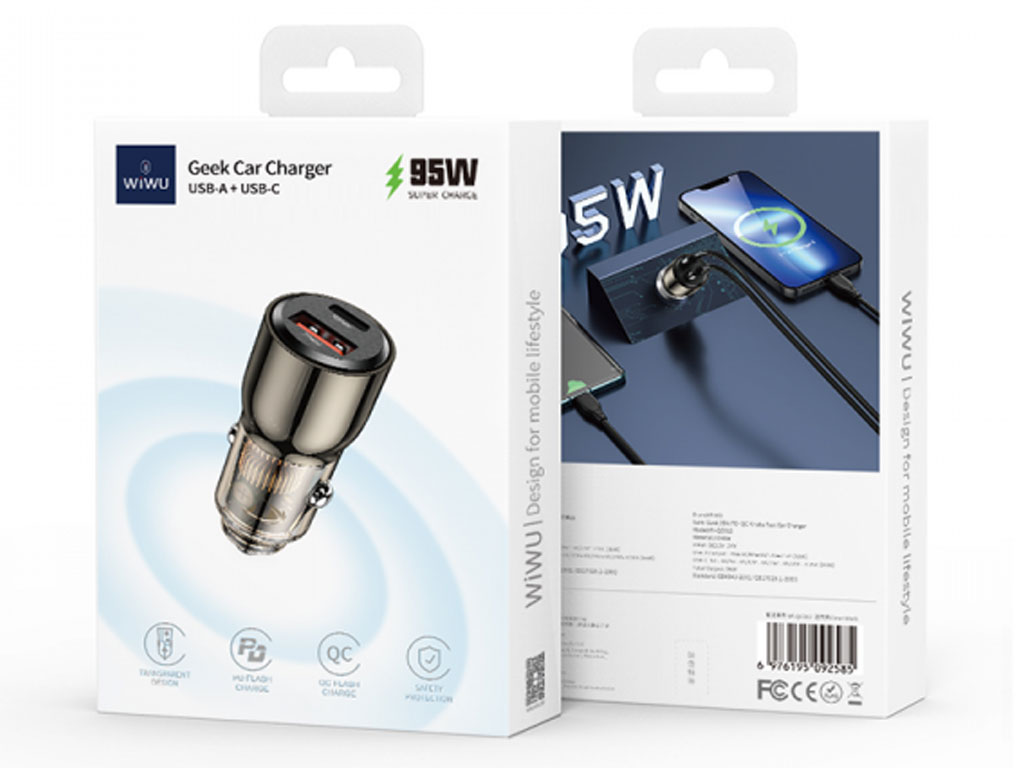 شارژر فندکی فست شارژ تایپ سی و یو اس بی 95 وات ویوو WI-QC012