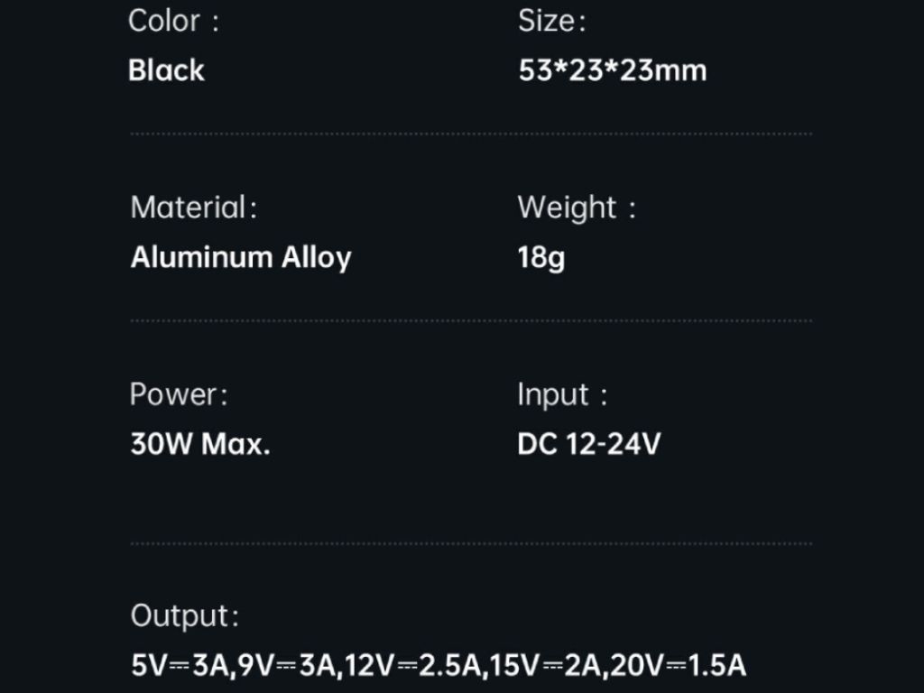 | خروجی درگاه تایپ سی برای ولتاژ 12 ولت | 5V⎓3A,9V⎓3A,12V⎓2.5A 30W Max |