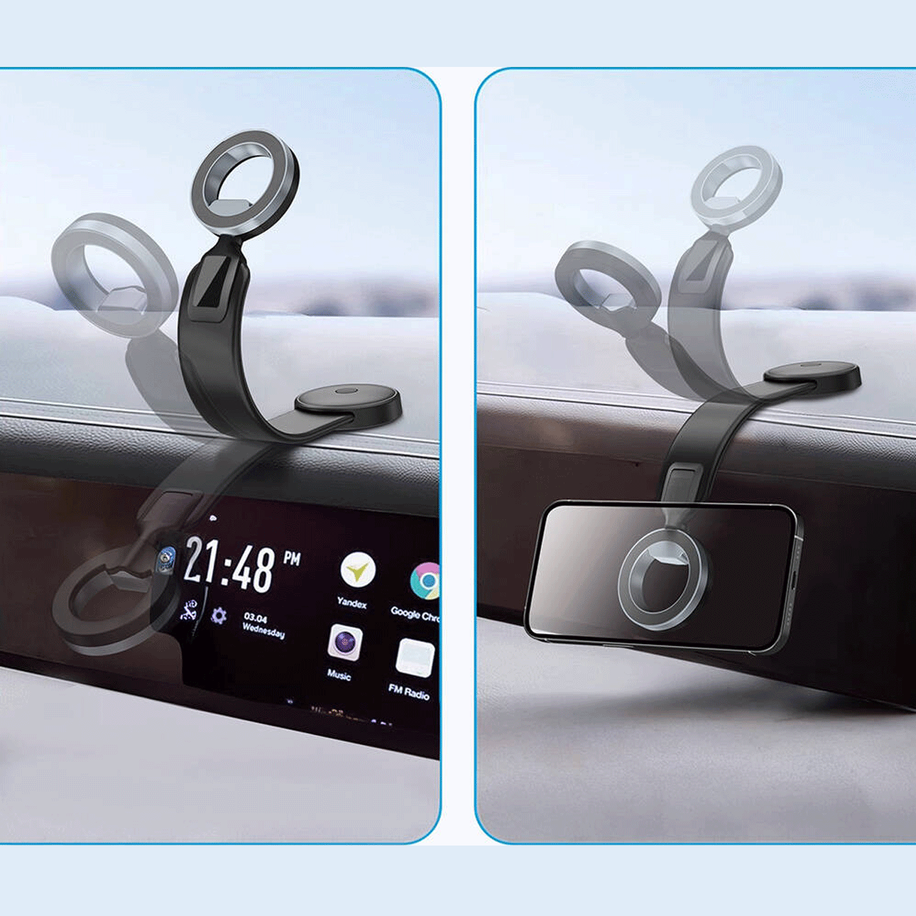 | محل نصب | داشبورد خودرو، شیشه خودرو، روی میز و دیگر سطوح صاف |