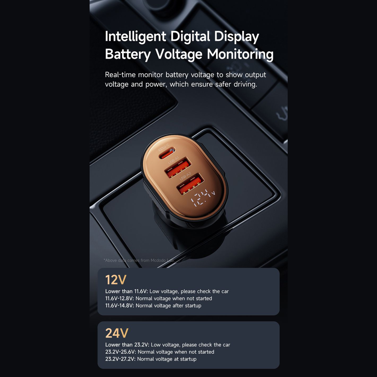 MCDODO CC-2300 Digital Display PD Car Charger 3Port 100w