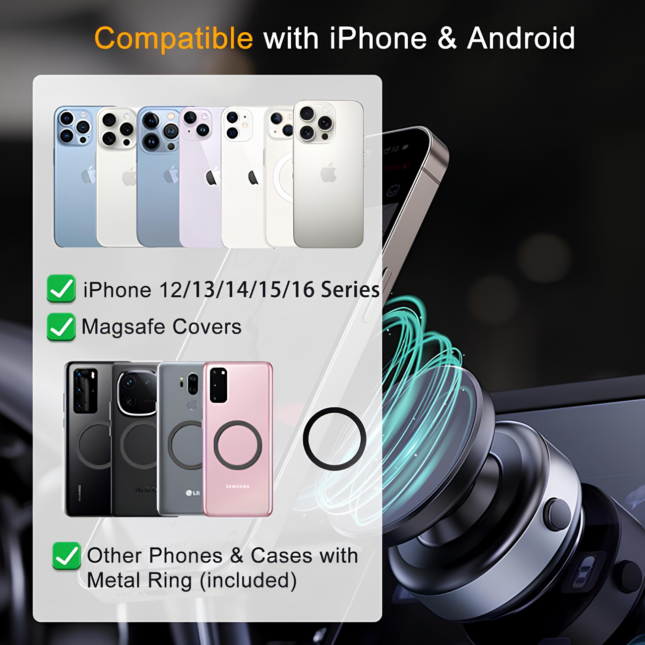 | سایر قابلیت ها | - تکنولوژی مکش: مکش الکتریکی اتوماتیک در عرض 1 ثانیه، بدون آسیب به سطح نصب. - سازگاری با MagSafe: دارای مگنت N52 با ساختار دو حلقهای برای چسبندگی بهتر به گوشی. - مناسب برای استفاده در خودرو، دفتر، و سایر سطوح صاف. |