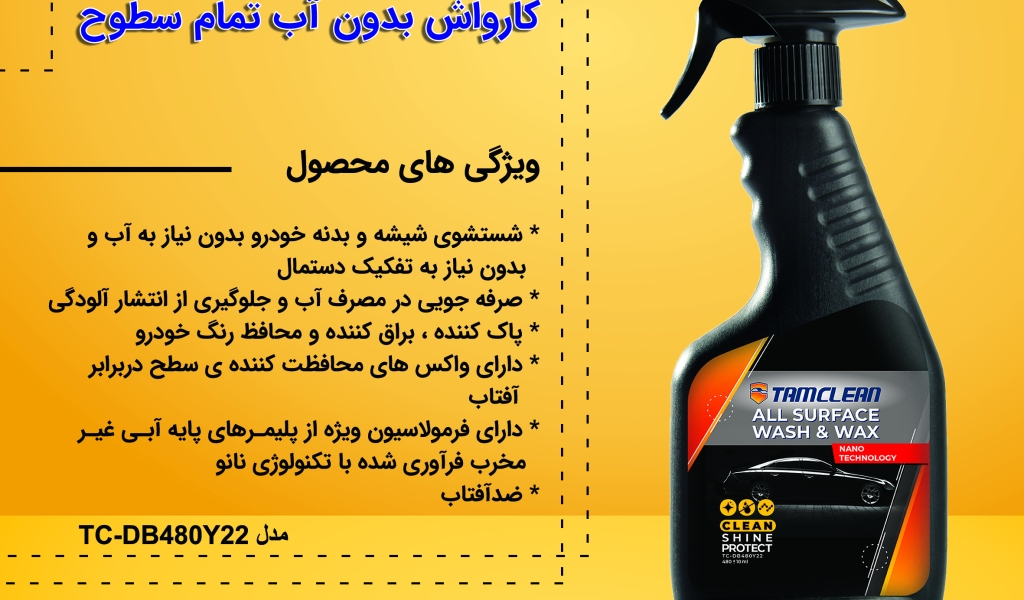 اسپری کارواش بدون آب تام کلین Tam Clean TC_DB480Y22 Wash& Wax Car