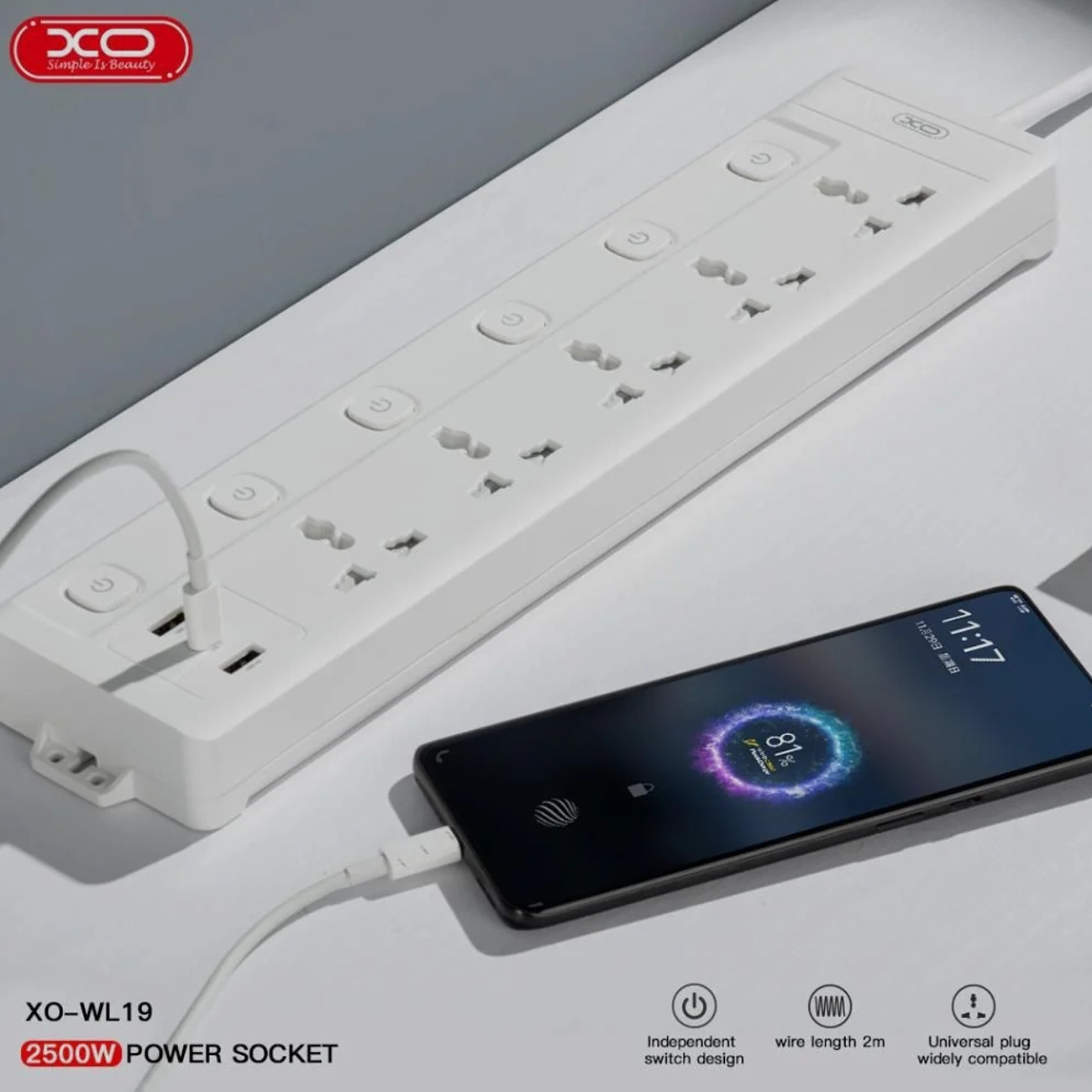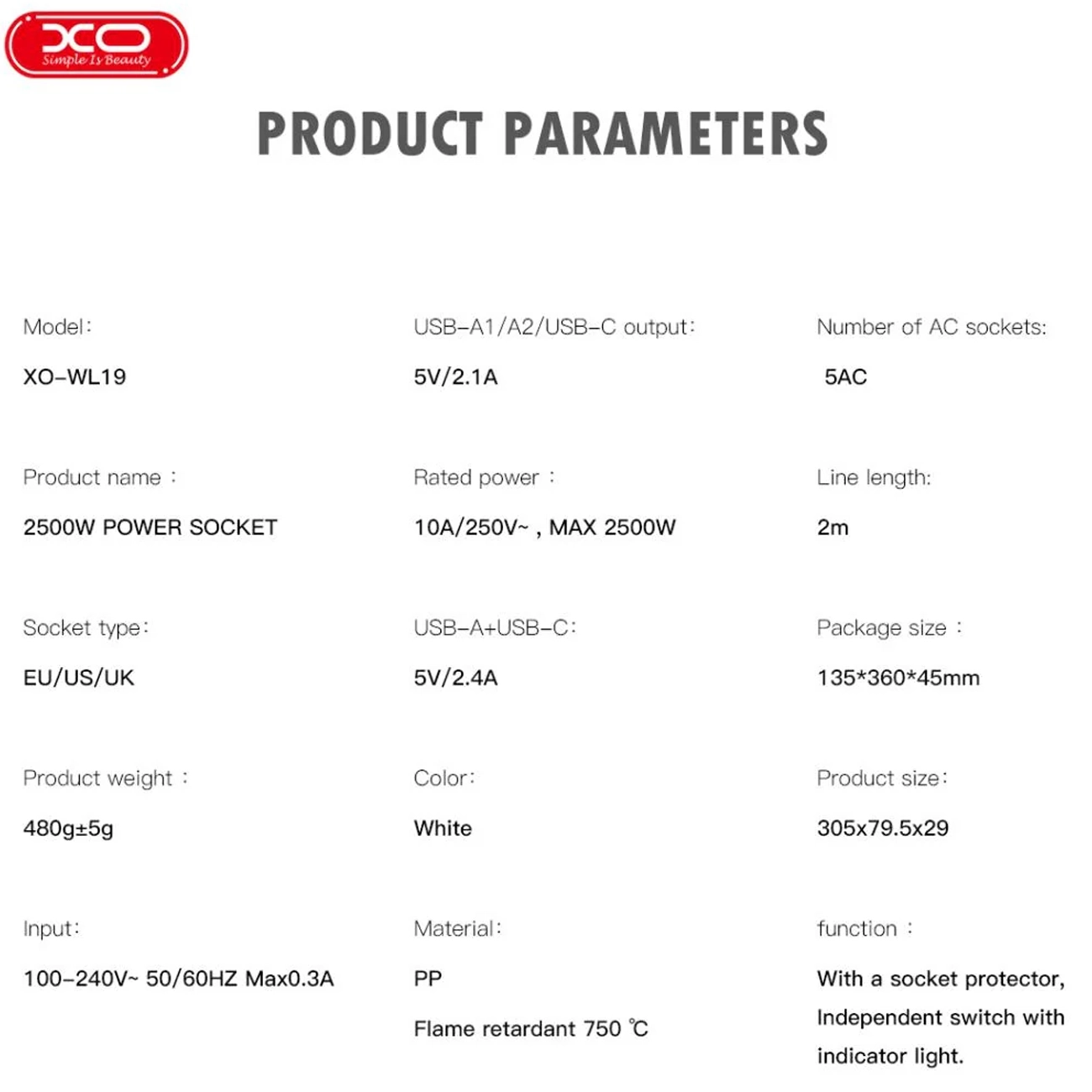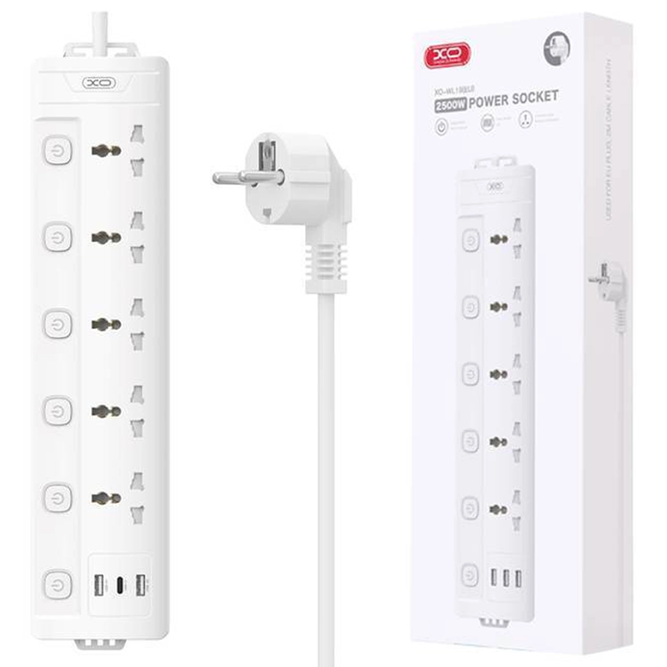 XO WL19 Power Strip USB-A, USB-C with Independent Switch