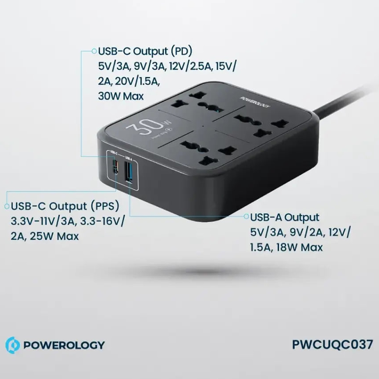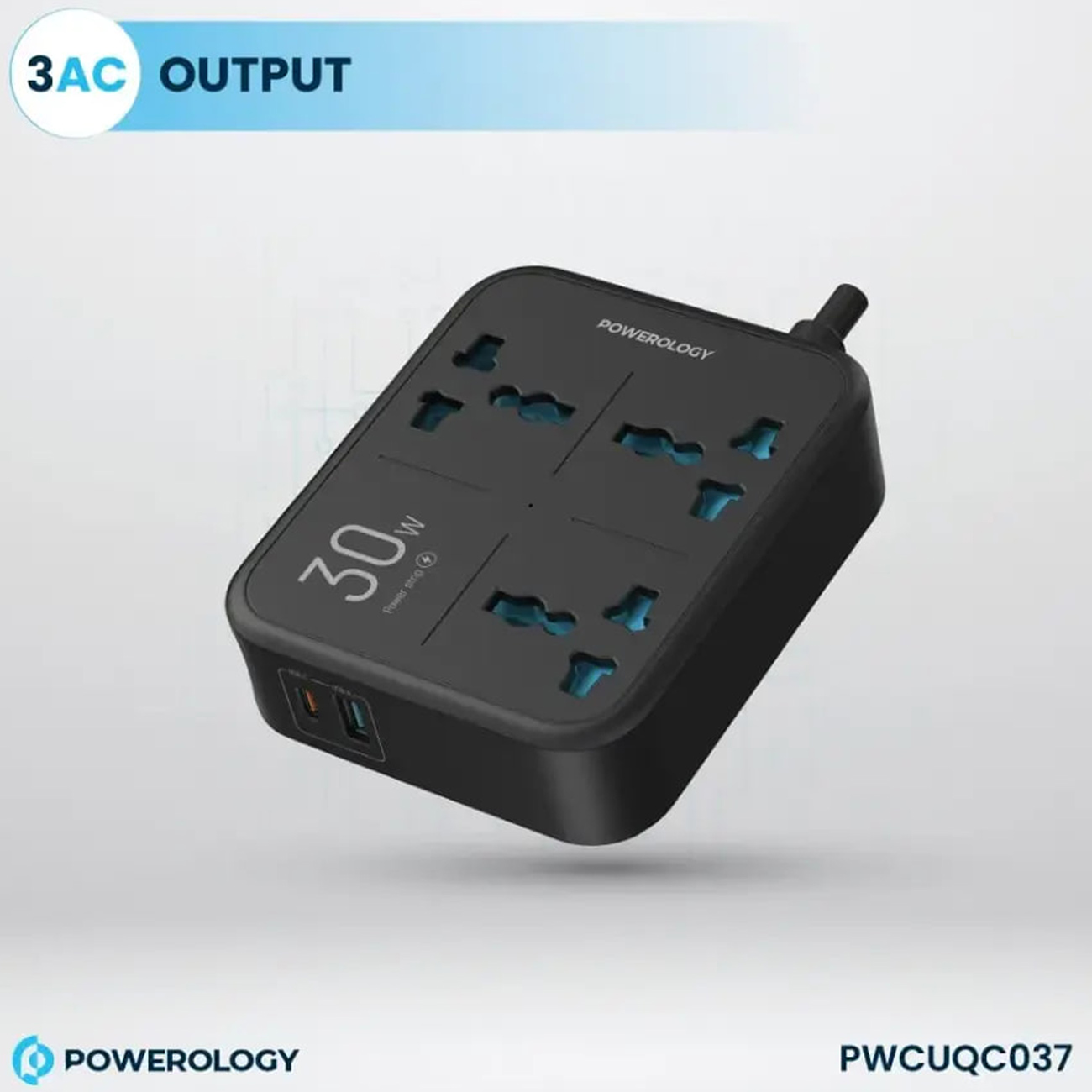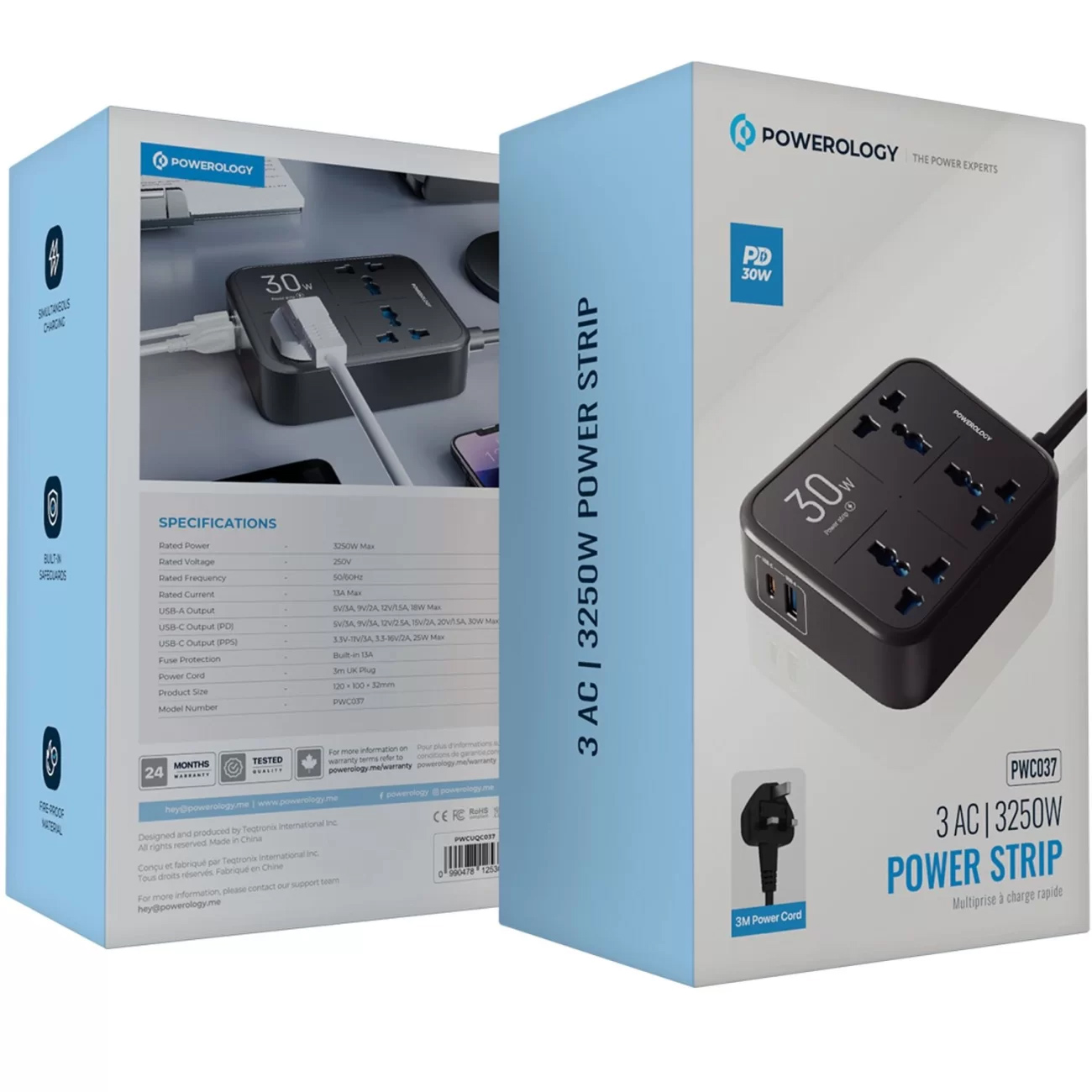 Powerology PWCUQC037 Power Strip 3250W 3AC - Black