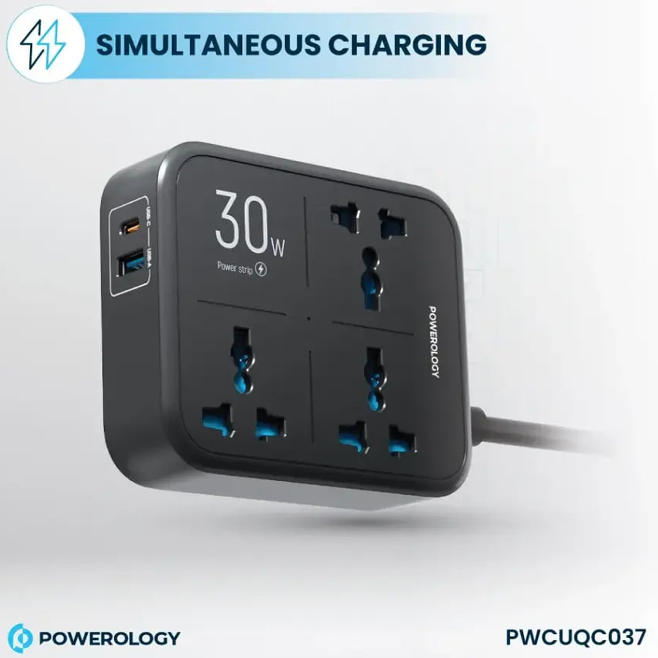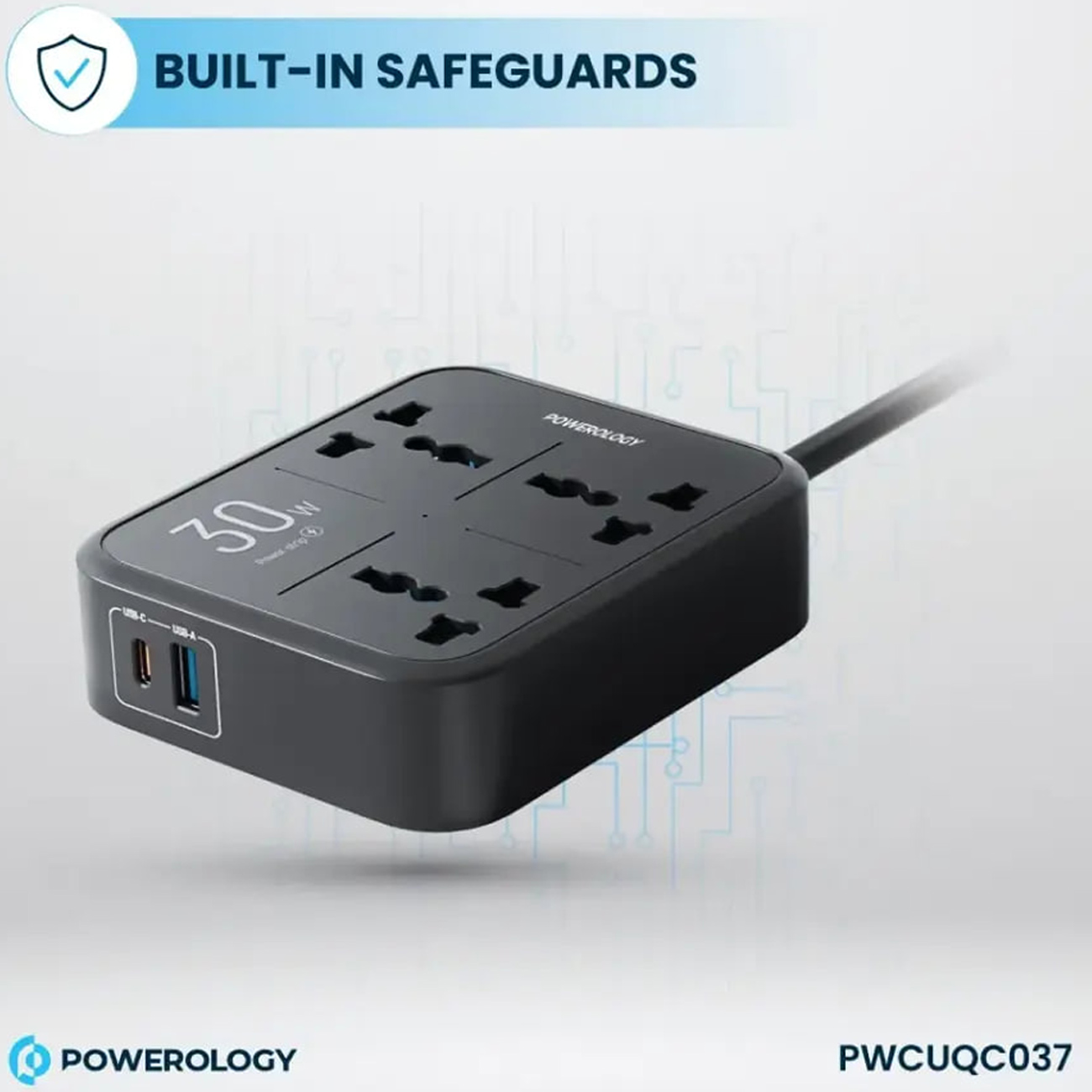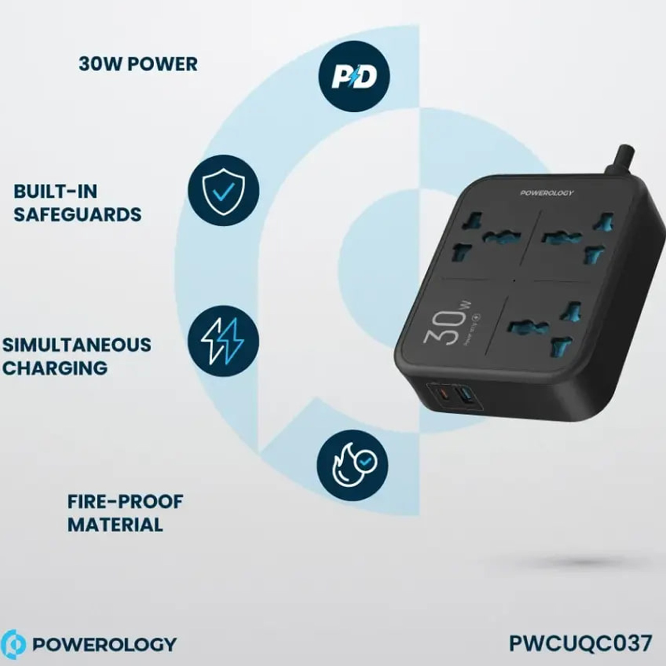 Powerology PWCUQC037 Power Strip 3250W 3AC - Black