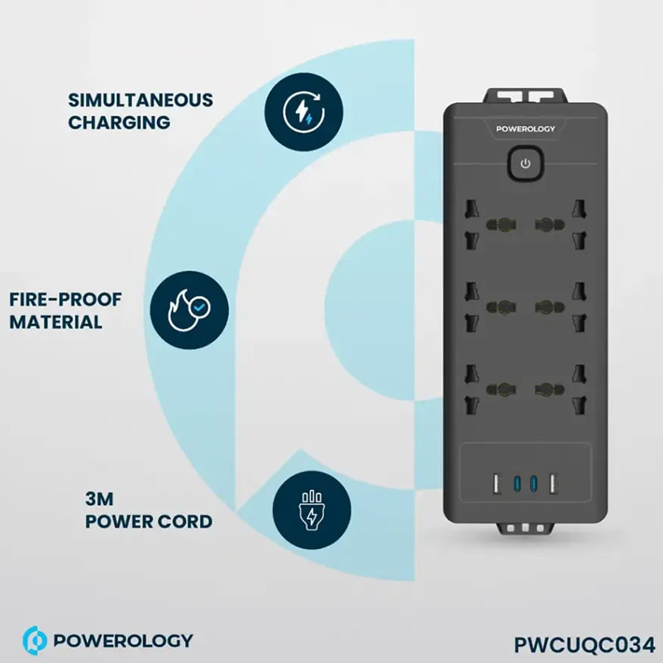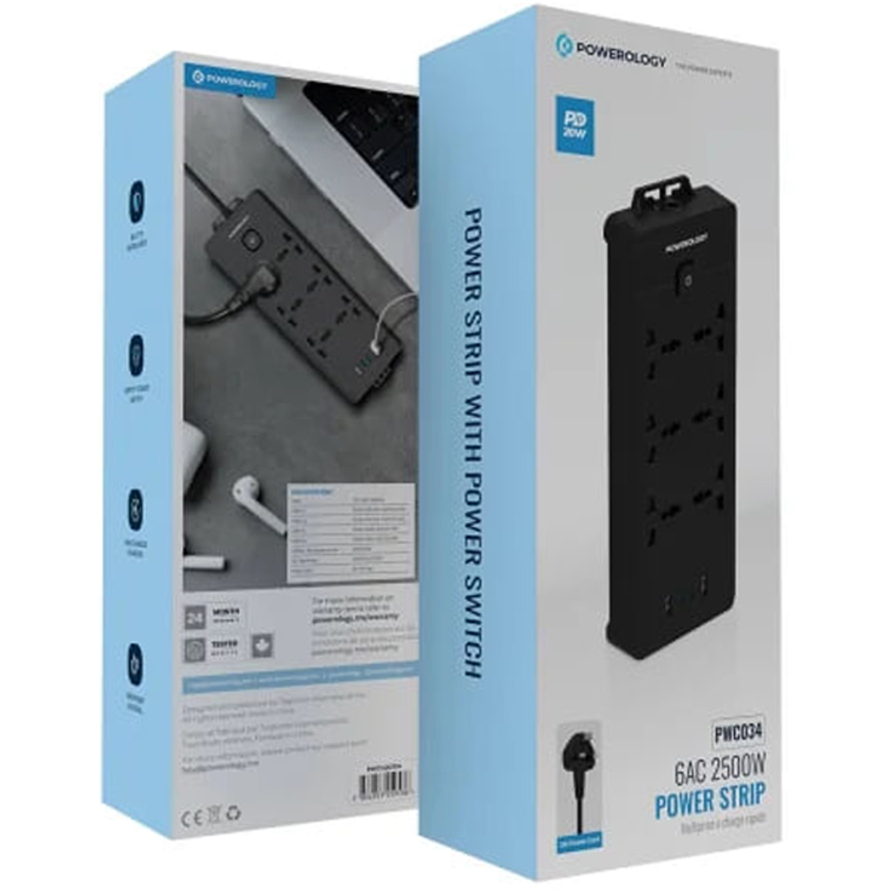 Powerology PWC034 6AC 2500W Power Strip - Black