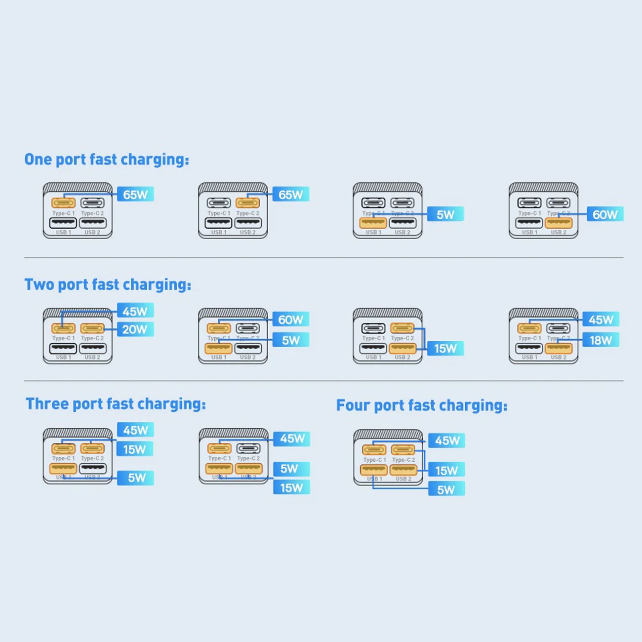 شارژر رومیزی فست 2 تایپسی و 2 یواسبی 65 وات بیسوس GaN3 Pro