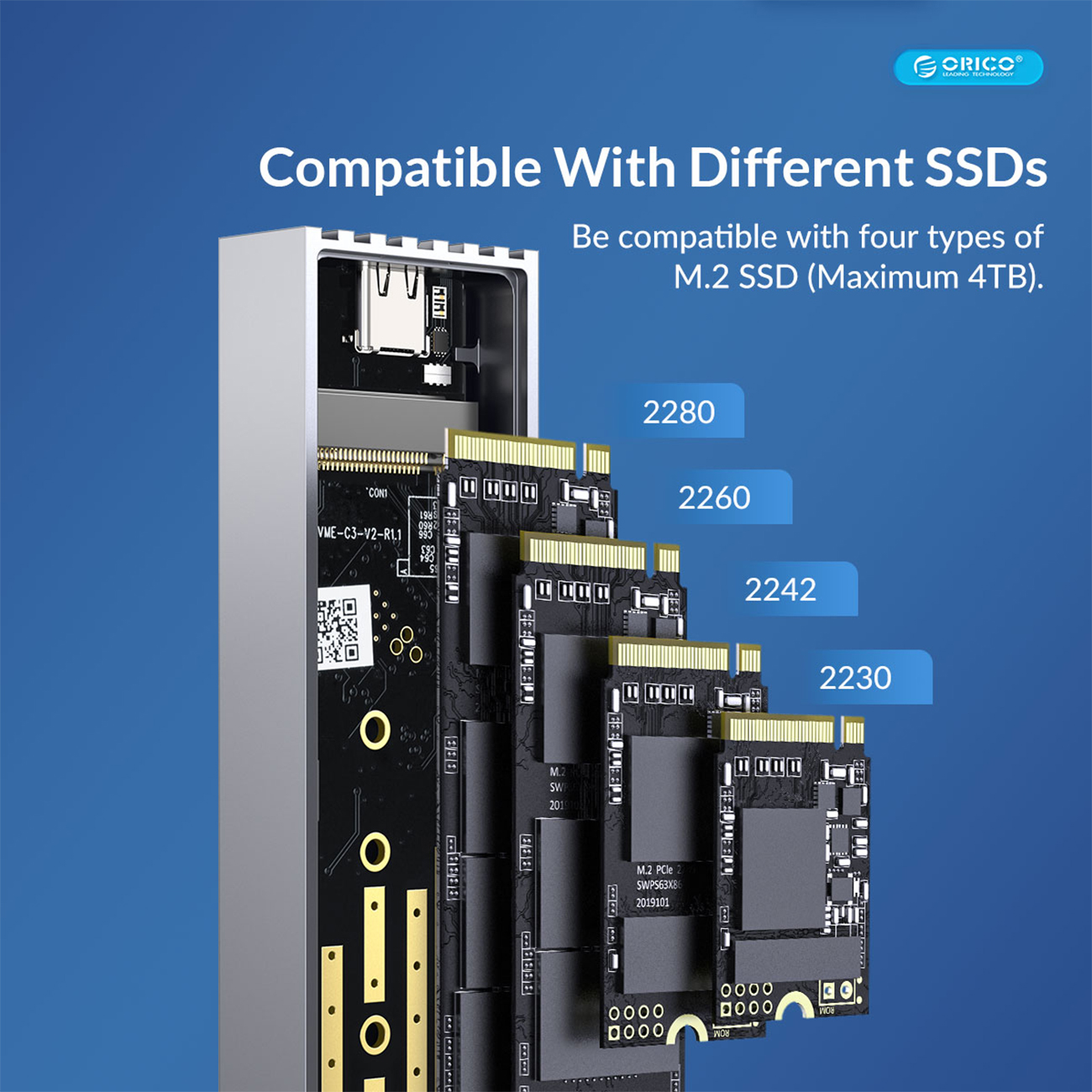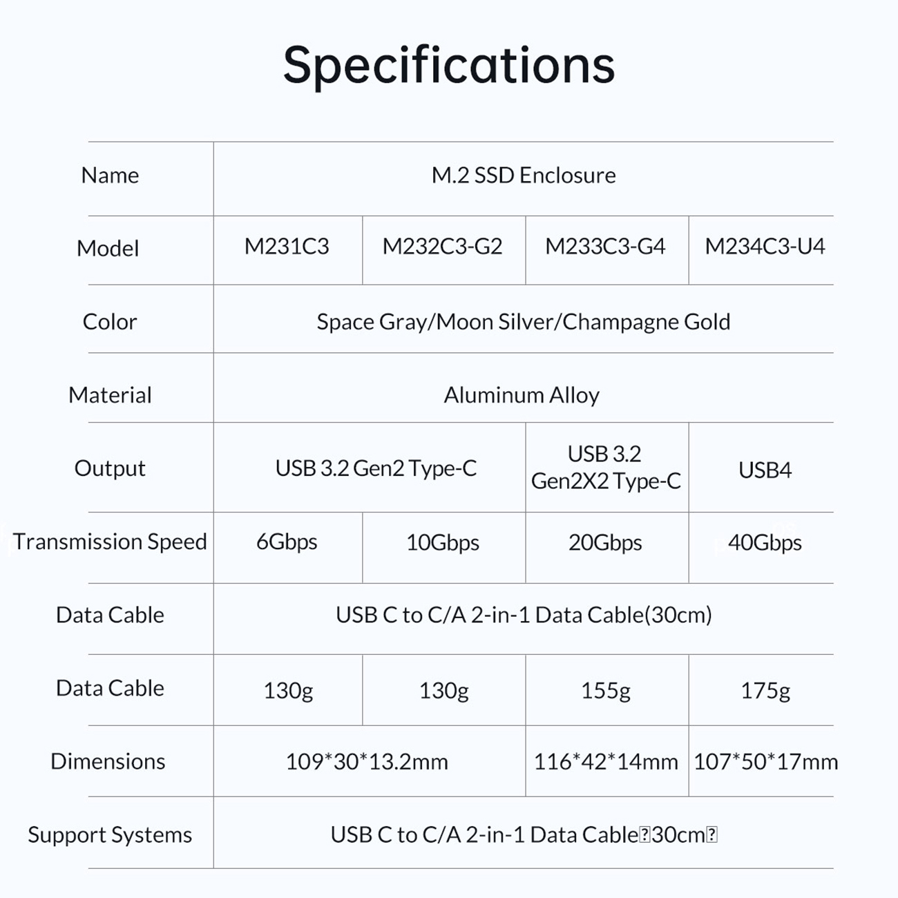 ORICO-M233C3-G4-GY-BP USB3.2 20Gbps M.2 NVMe SSD Enclosure