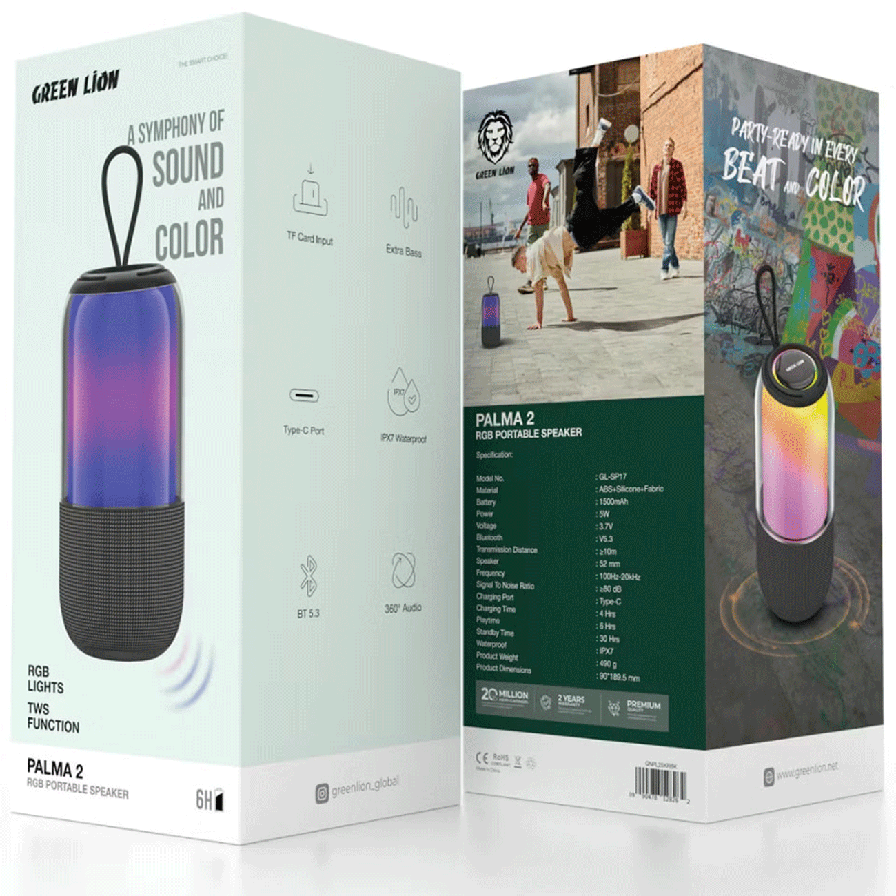 Green Lion GNPL2SKRBK Palma 2 RGB Portable Speaker