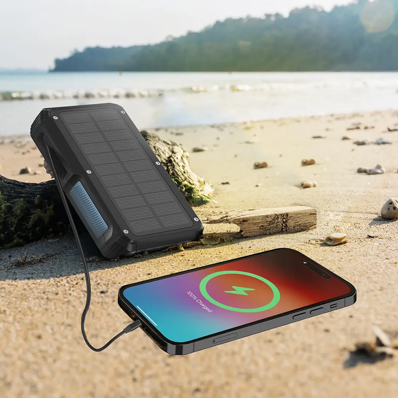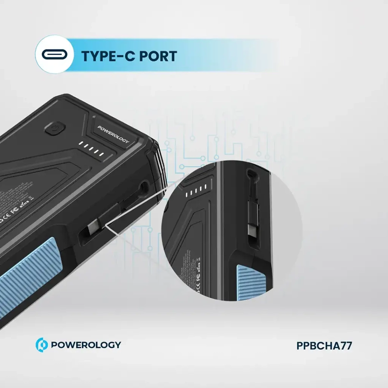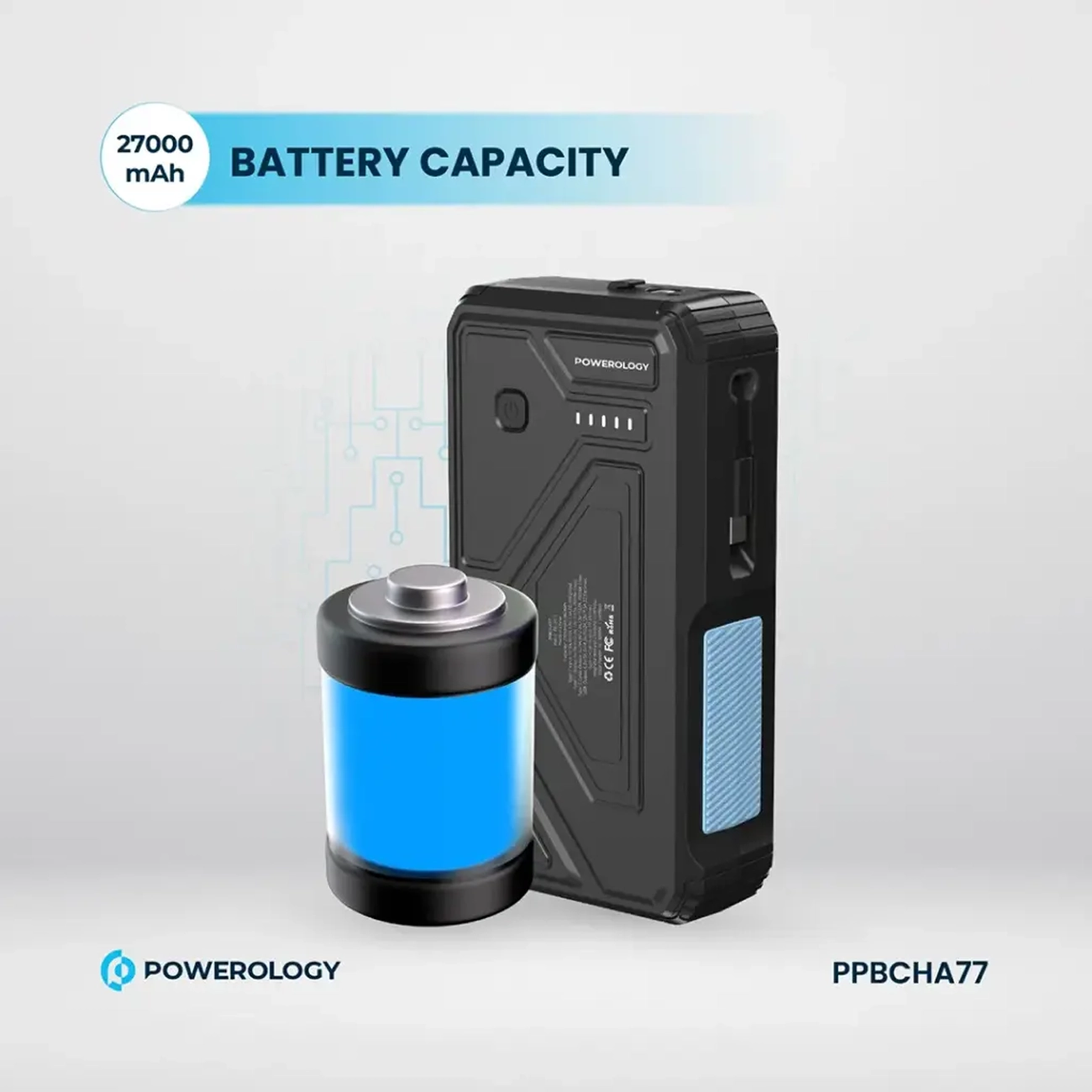 پاوربانک وایرلس خورشیدی 27000 تایپ‌سی و یواس‌بی 22.5 وات پاورولوژی PP077 PPBCHA77 دارای چراغ‌قوه