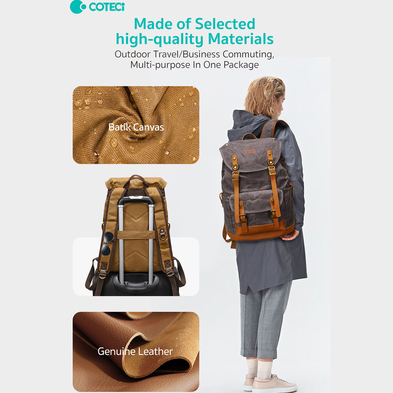 | جنس | بدنه از پارچه مقاوم کنواس,بندهای و پوششهای تزئینی از چرم گاوی با کیفیت بالا |