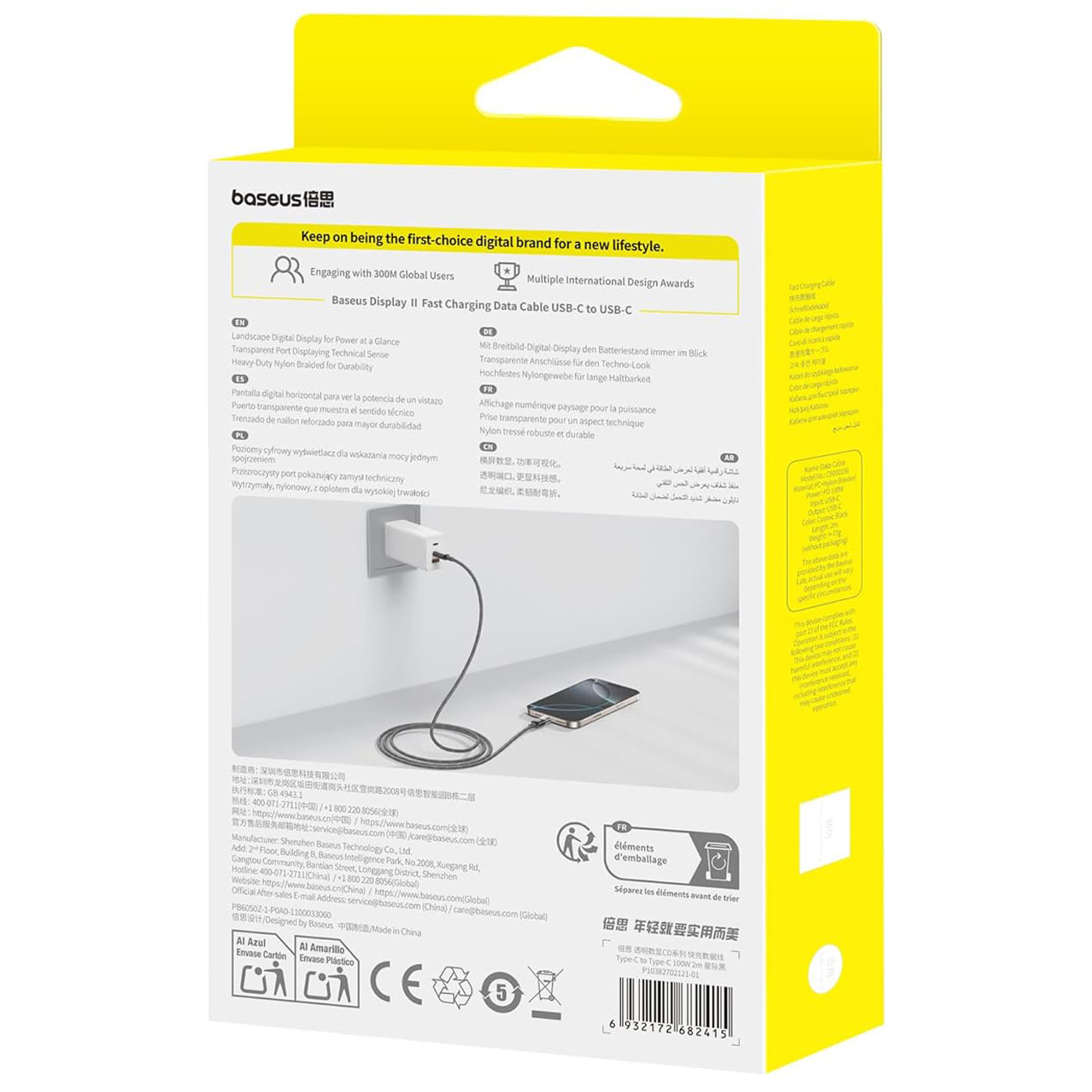 Baseus P10382701121-00 USB to Type-c Cable Display 2 100w Fast Charging Cable