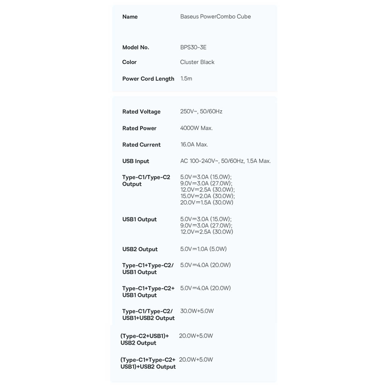 Baseus PowerCombo Cube 7-Ports Power Strip 30W E00066400117-00