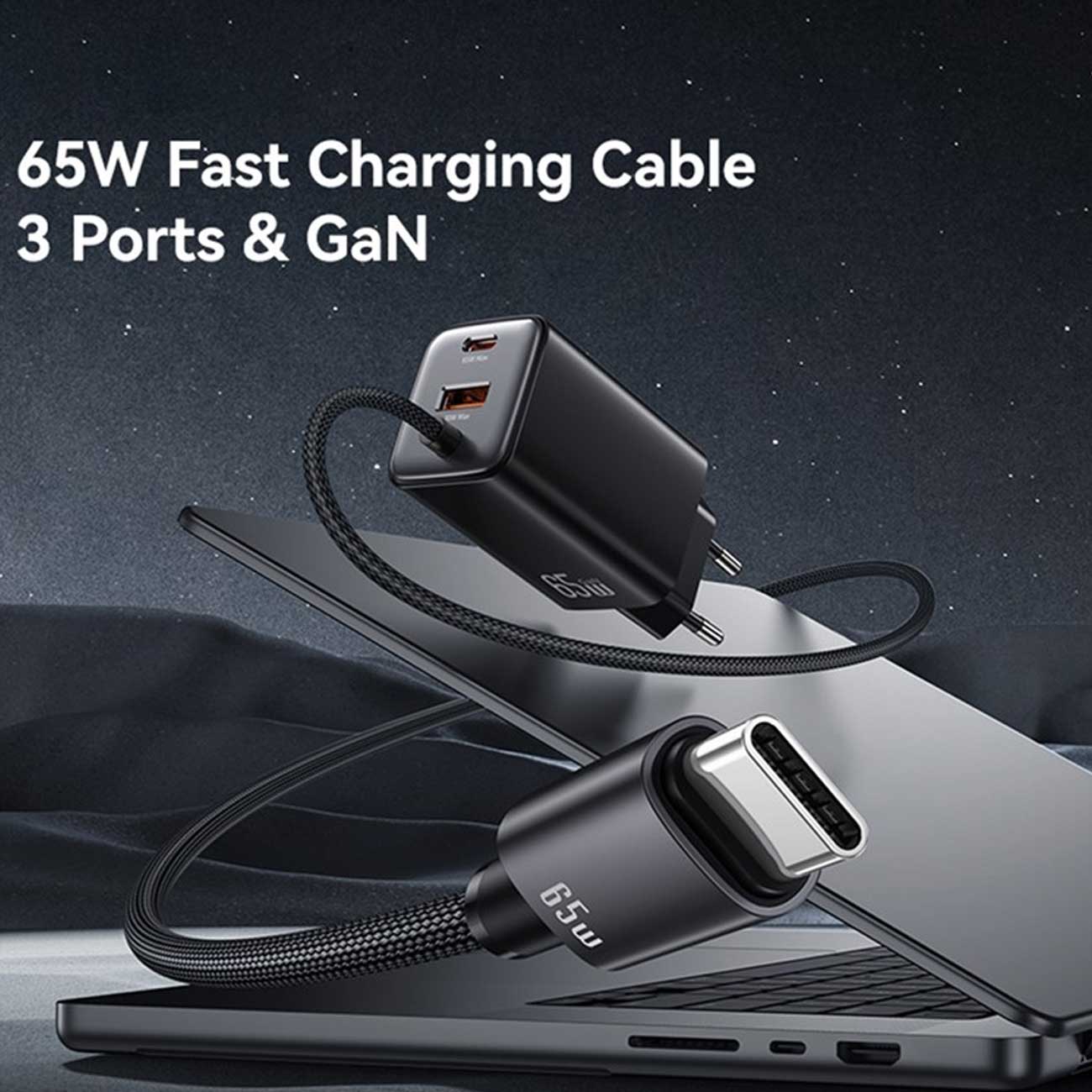 این شارژر دارای توان 65 وات و درگاه تایپسی است و همراه با کابل تایپسی ارائه میشود. فناوری PD (Power Delivery) امکان شارژ سریع گوشیها، تبلتها و لپتاپهای سازگار را فراهم میکند و سرعت شارژ بهینه و ایمن را ارائه میدهد.