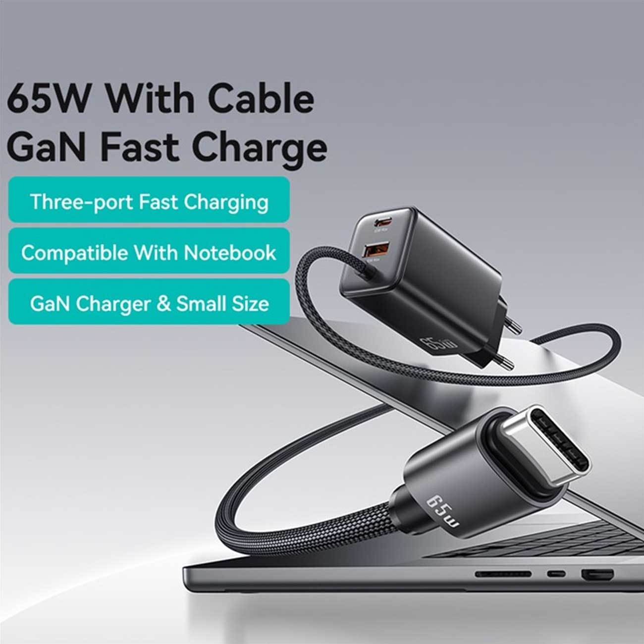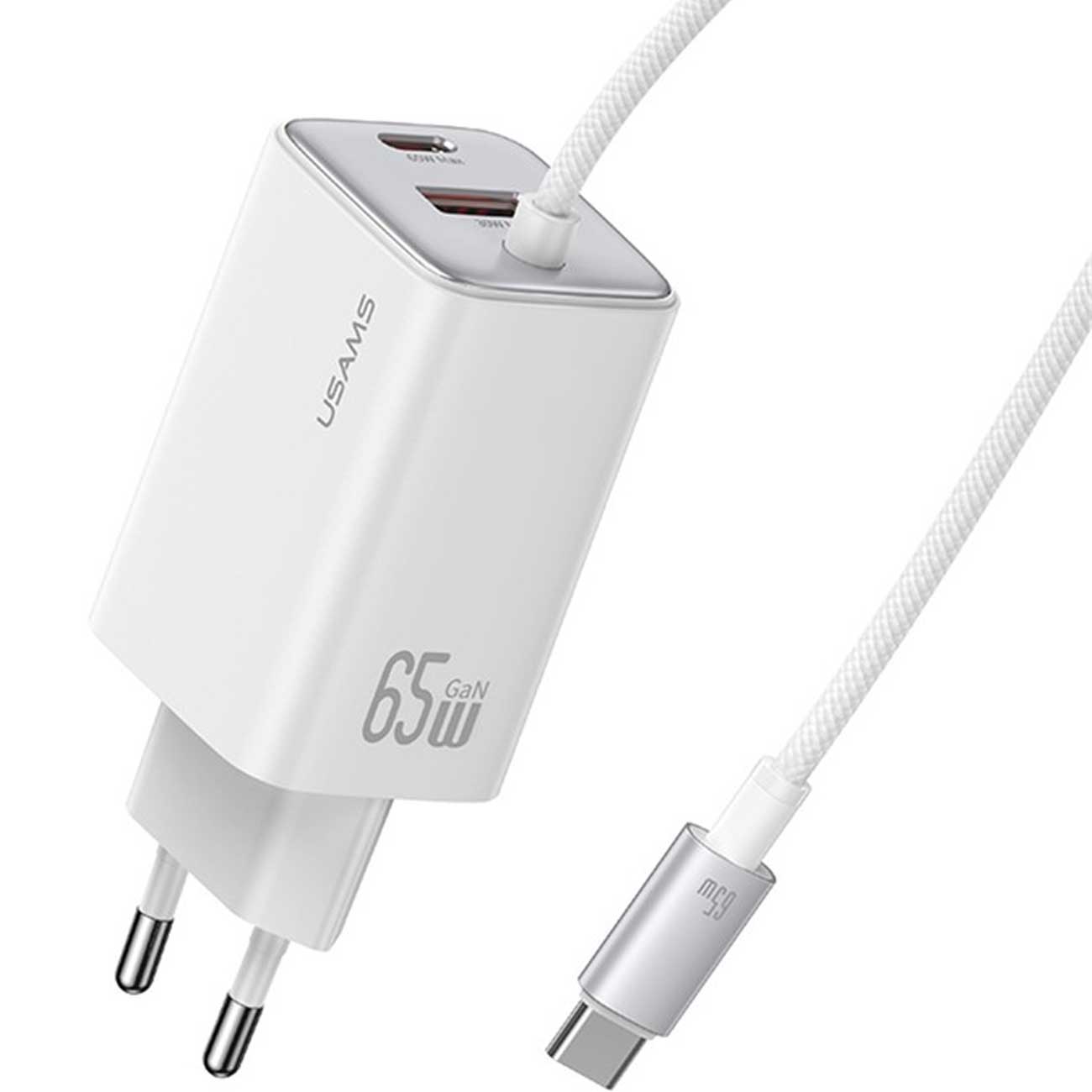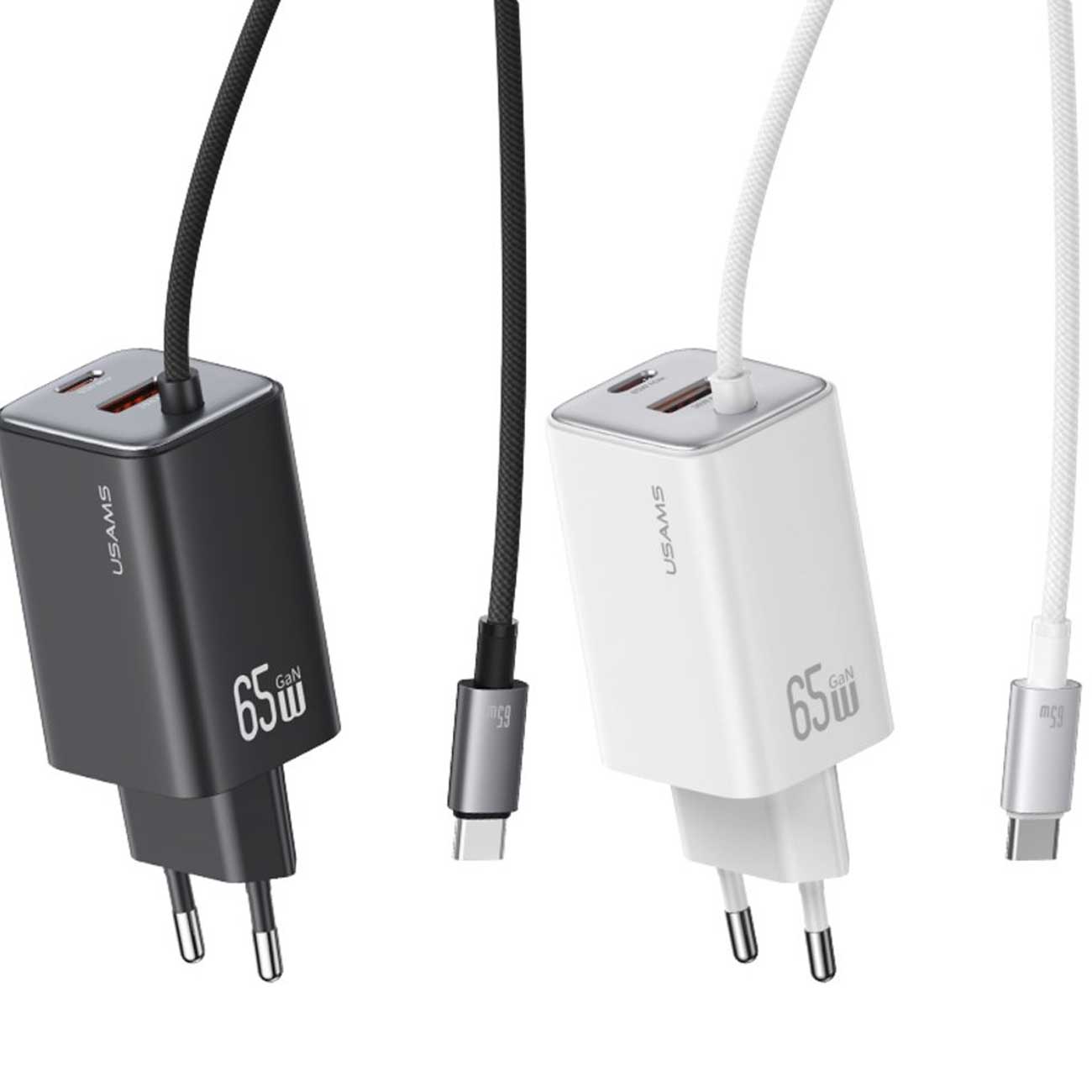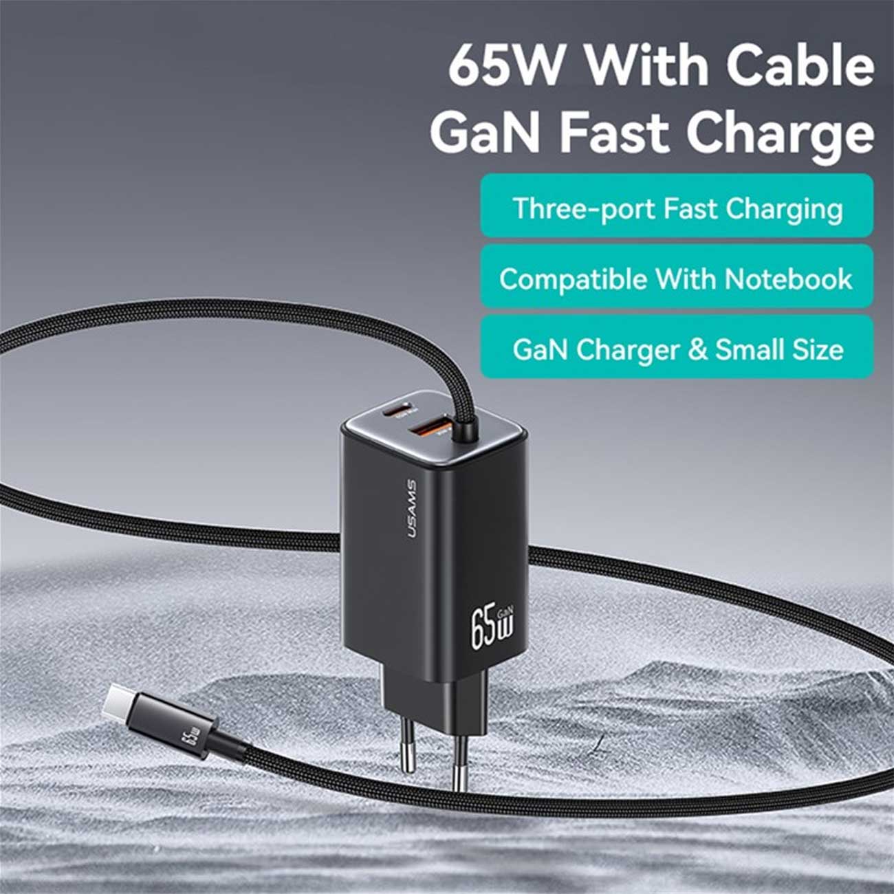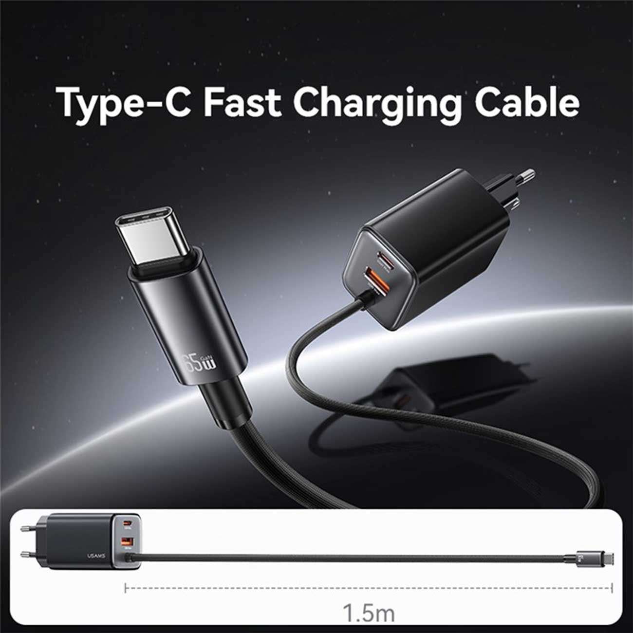 شارژر دیواری تایپ سی 65 وات با کابل شارژ تایپ سی یوسامز CC266 PD65W