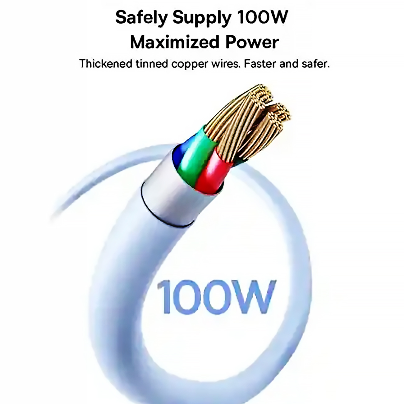 این کابل از توان 100 وات پشتیبانی میکند و شارژ سریع انواع گوشیها، تبلتها و لپتاپهای سازگار را امکانپذیر میسازد. اتصال پایدار و انتقال انرژی بهینه، تجربهای مطمئن و سریع را فراهم میکند.