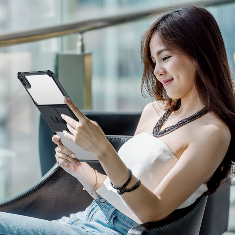 کاور و استند نیمه شفاف ضد ضربه یاندو Beatle Holder برای آیپد ایر 13 اینچ 2024، محافظی سبک و مقاوم با استند چندحالته برای استفاده آسان و تماشای راحت است.