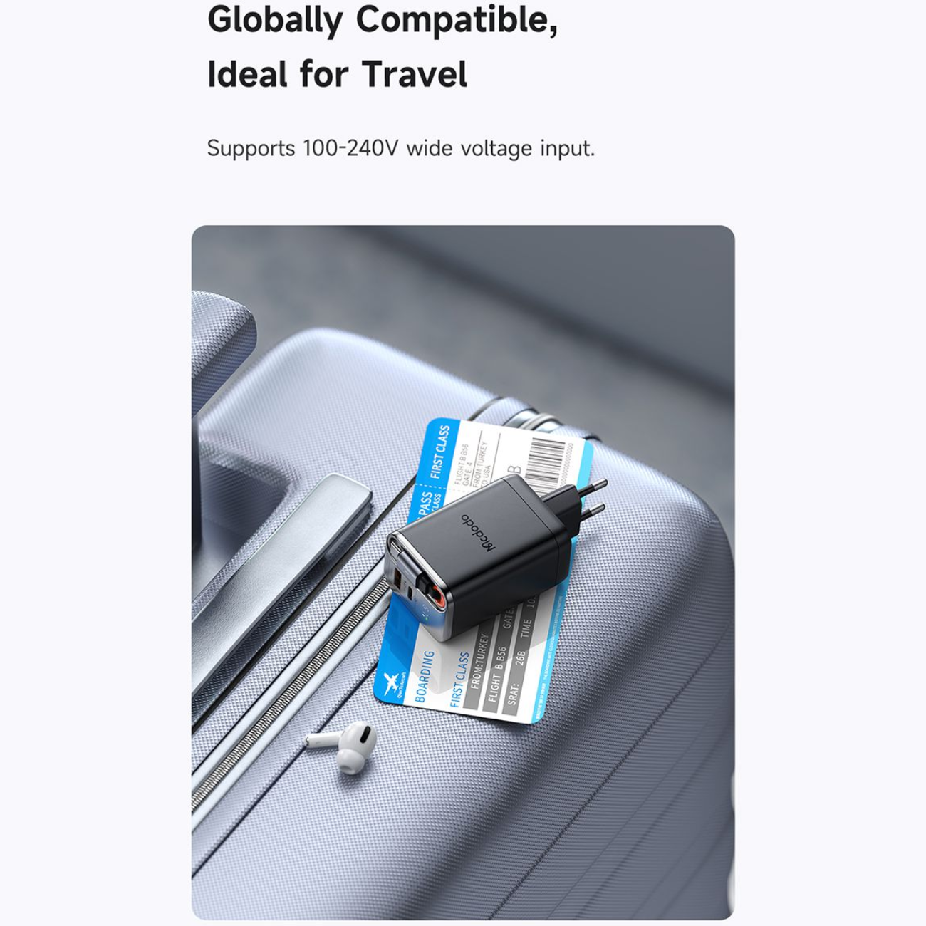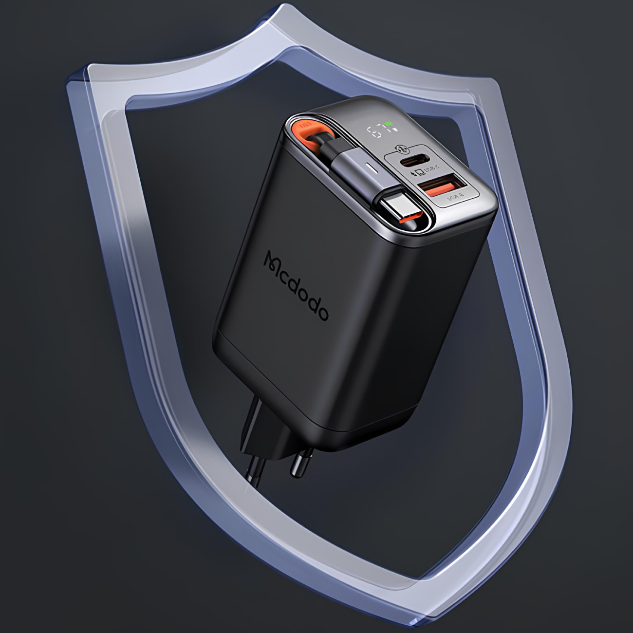 شارژر دیواری مکدودو CH-4100 ترکیبی کاربردی از شارژ سریع و قابلیت حمل آسان است. این شارژر با توان ۶۷ وات و وجود کابل Type‑C جمعشونده، برای کاربران گوشی، تبلت و لپتاپهای سبک که دنبال شارژ سریع و راحت هستند، گزینهای مناسب است.