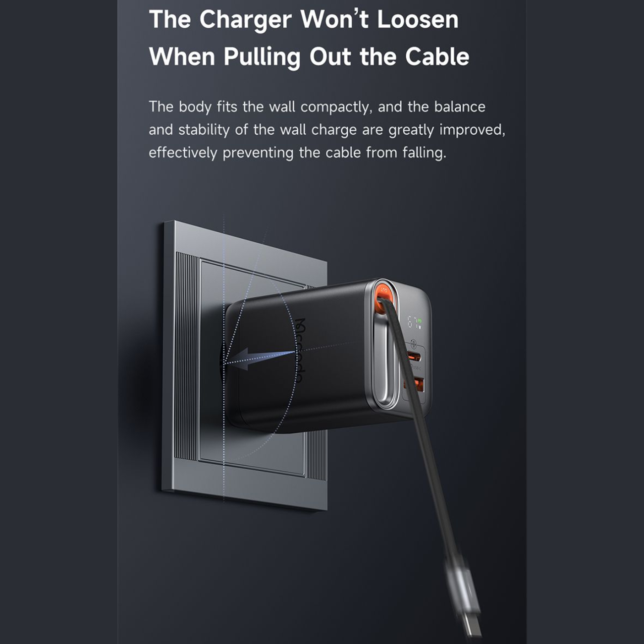 شارژر دیواری فست شارژ مکدودو CH-4100 – ۶۷ وات با کابل جمعشونده Type‑C