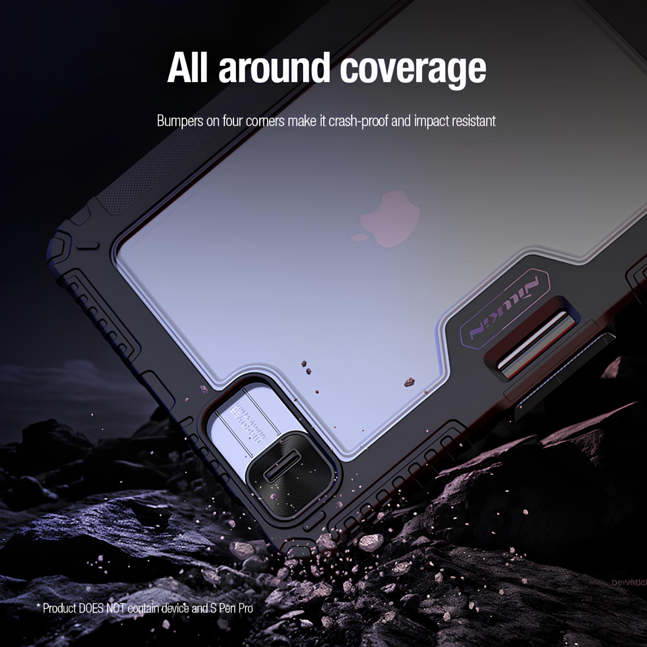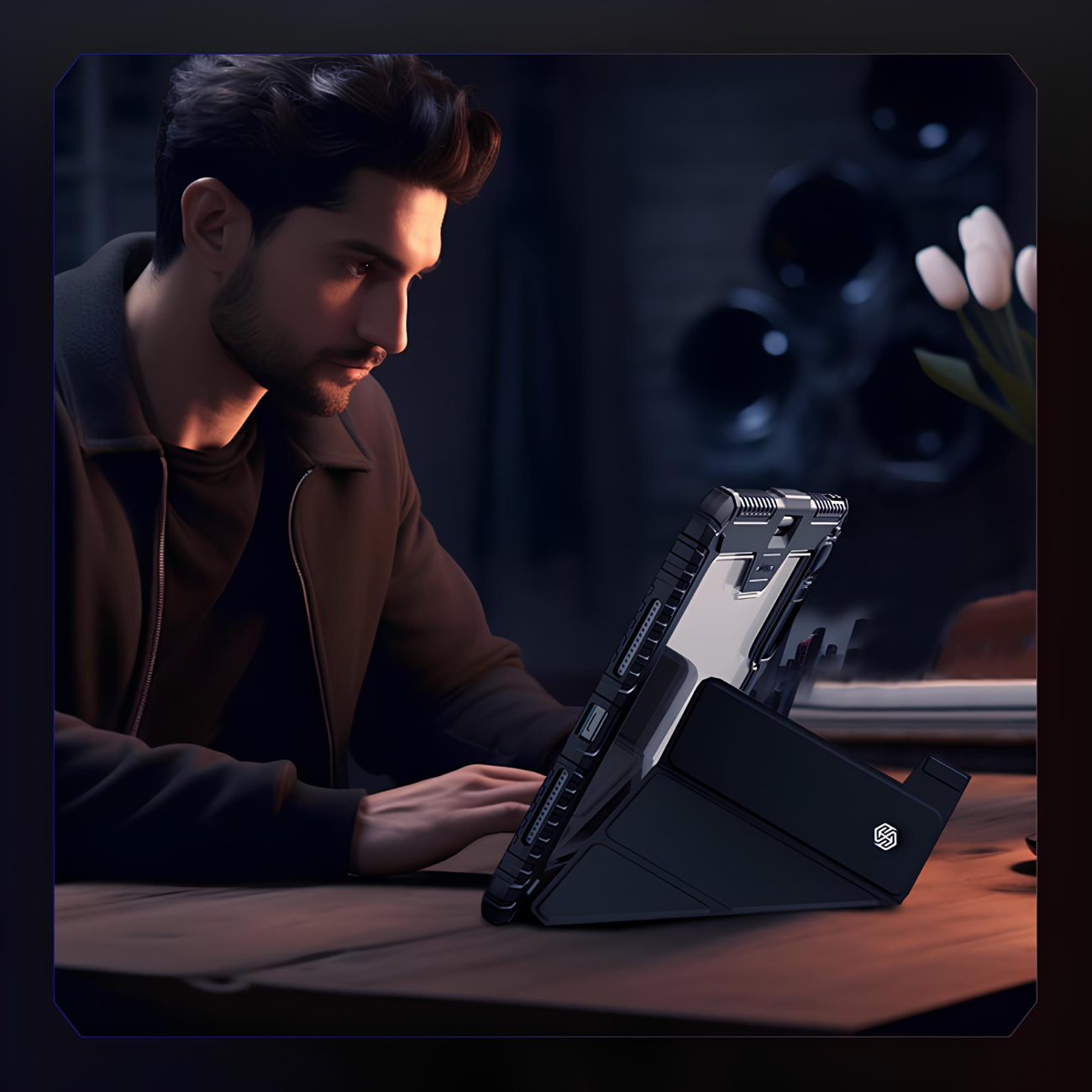 کاور کلاسوری Nillkin Bumper Leather Case Pro مخصوص آیپد پرو ۱۳ اینچ ۲۰۲۴ طراحی شده است. این قاب ترکیبی از محافظت دقیق، استایل مینیمال و کارایی بالا را همزمان ارائه میدهد.