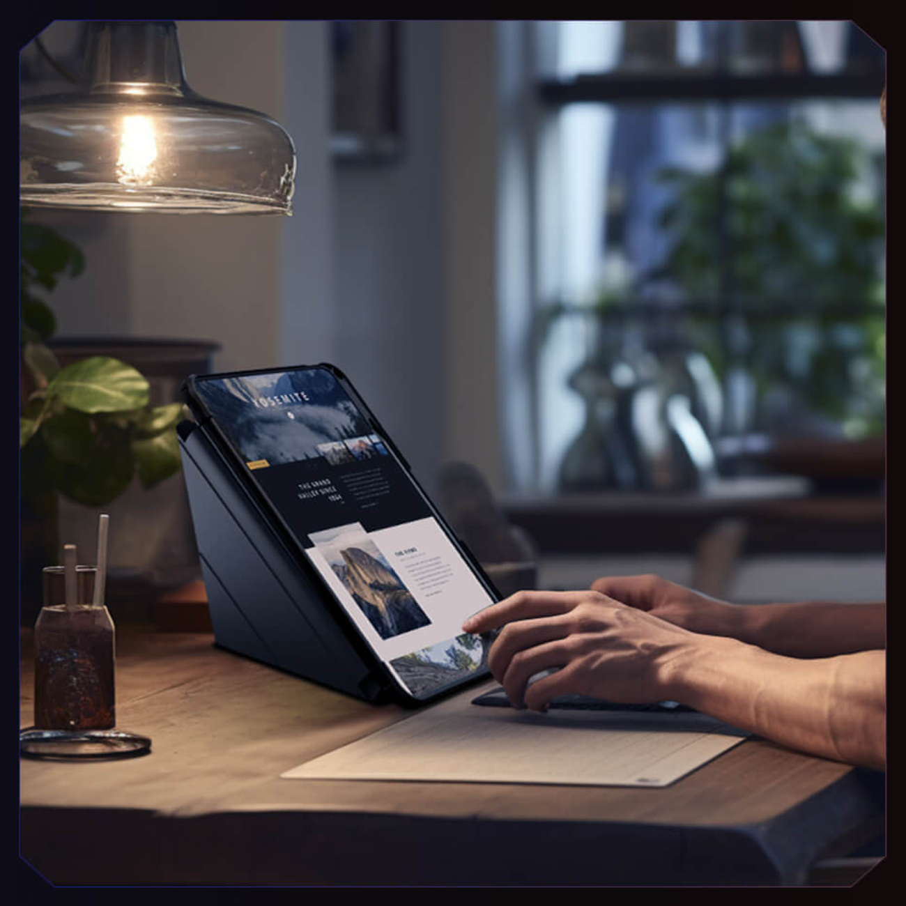 قابلیت تبدیل قاب به استند در زوایای مختلف برای تایپ، مطالعه یا تماشای فیلم.