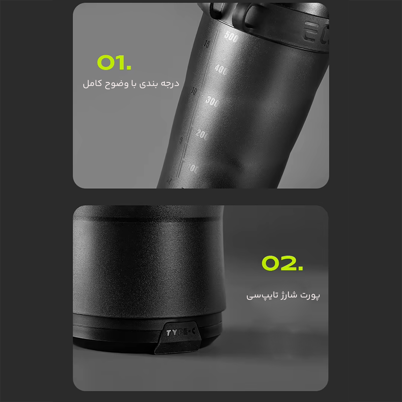شیکر ورزشی و مخلوط کن شارژی 550 میلیلیتر اکورا EQURA E-010